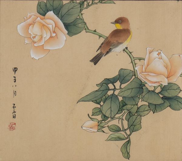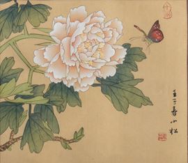 Pair of paintings decorated with birds, peony and butterfly, China, 20th century