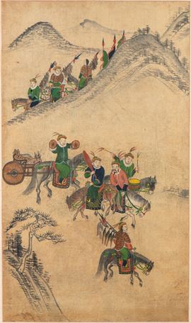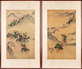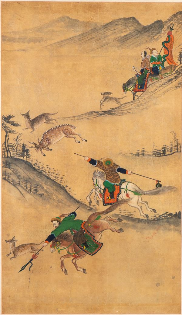 Pair of paintings depicting a hunting scene in the mountains. From the collection of the Italian diplomat Giorgio Fiaccadori, located in Japan in 1956, date of purchase.