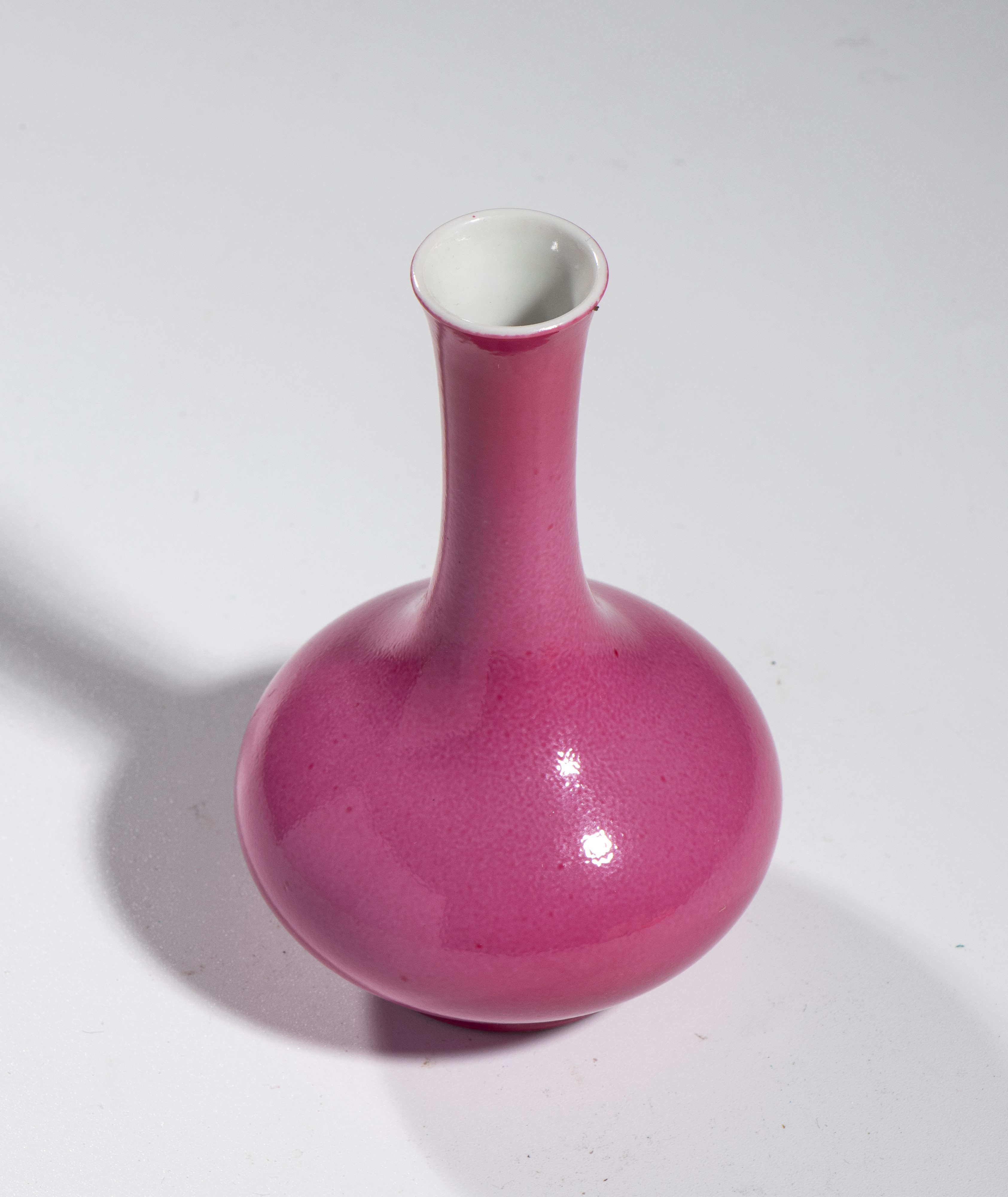 Small bottle-shaped vase in ruby glazed porcelain.