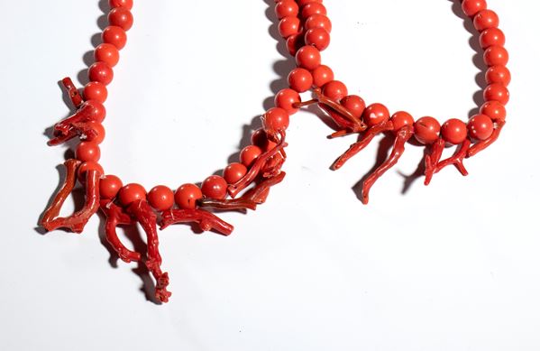 Two bamboo coral necklaces.