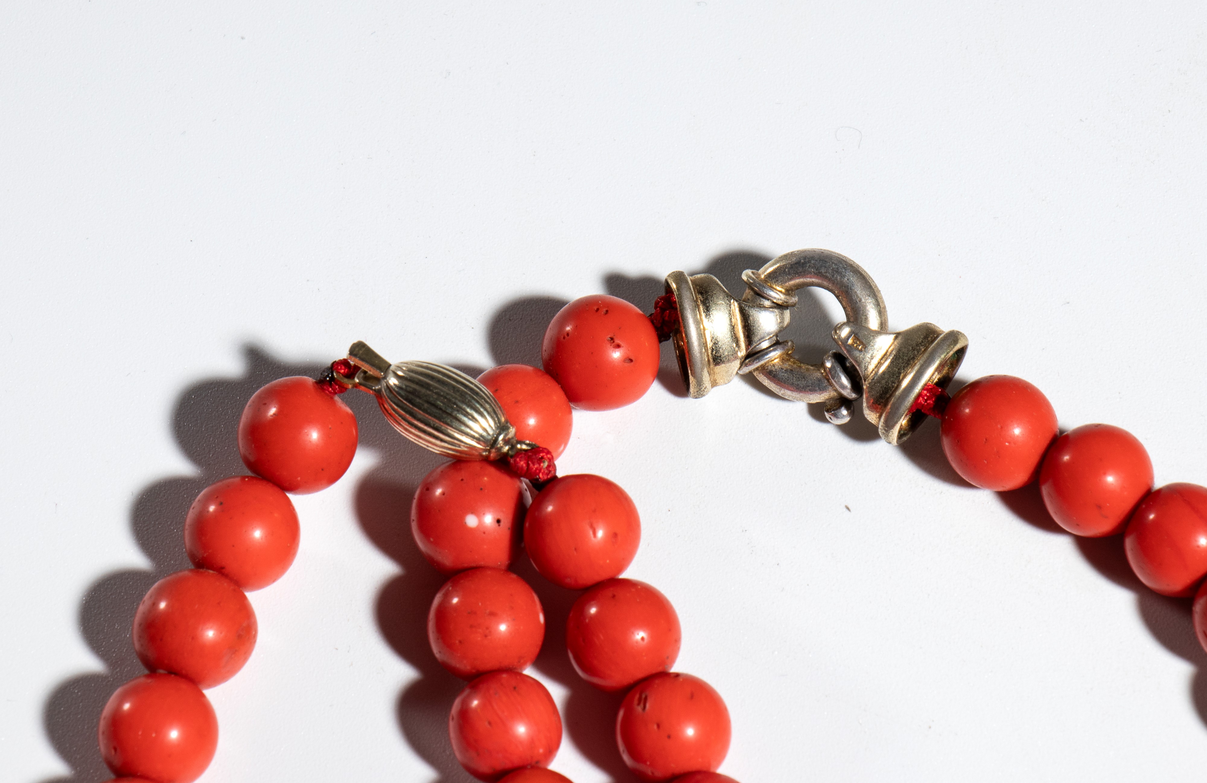 Two bamboo coral necklaces, China