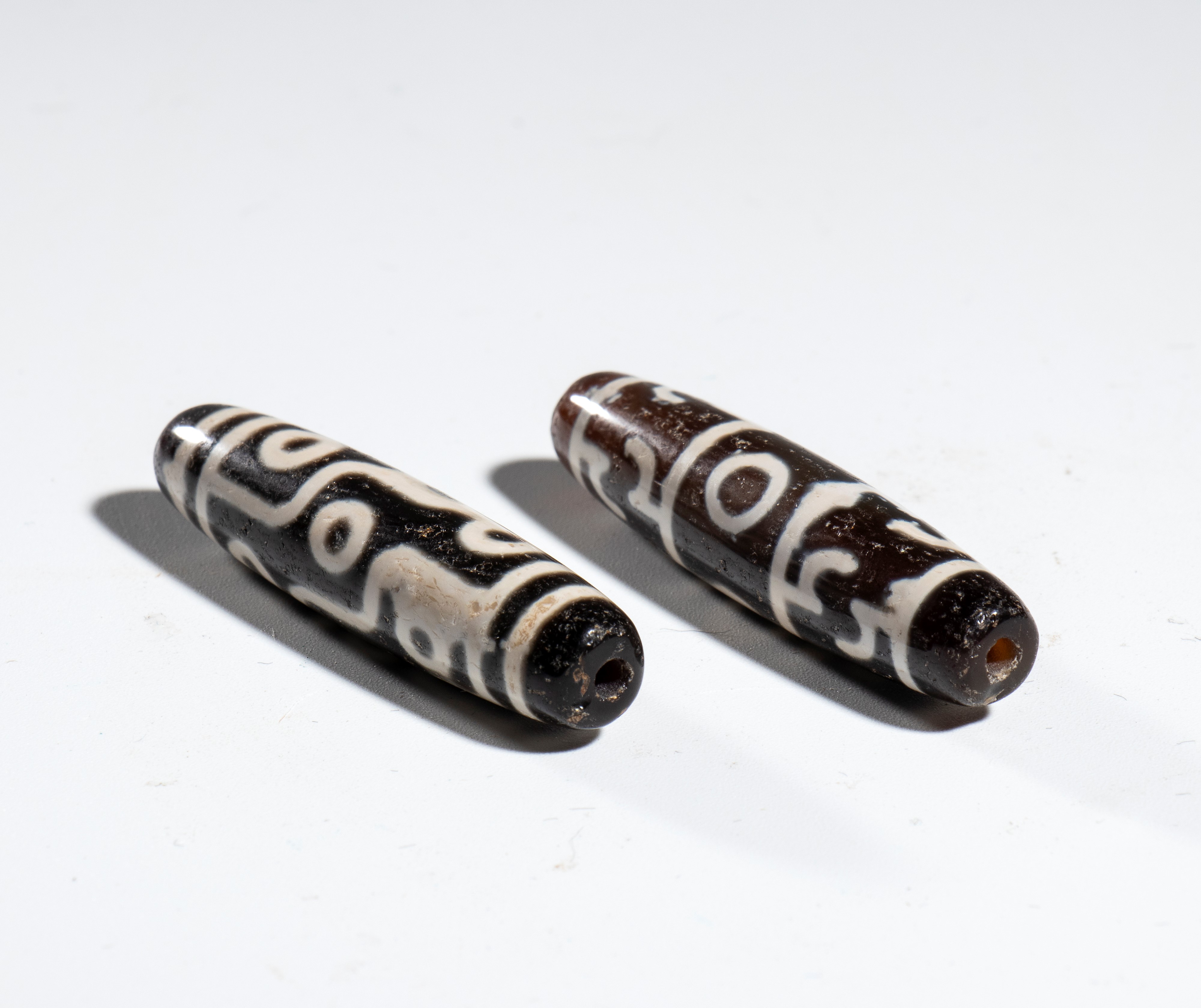 Two Buddhist Dzi amulets made of agate, Tibet, China, 20th century