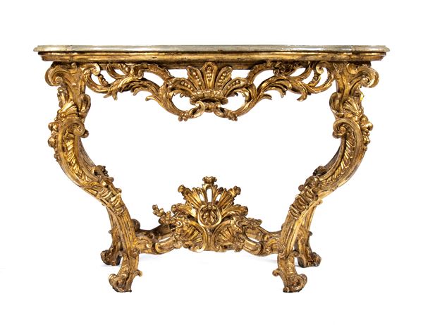 Italian Louis XV gilded console table, Piedmont, 18th Century