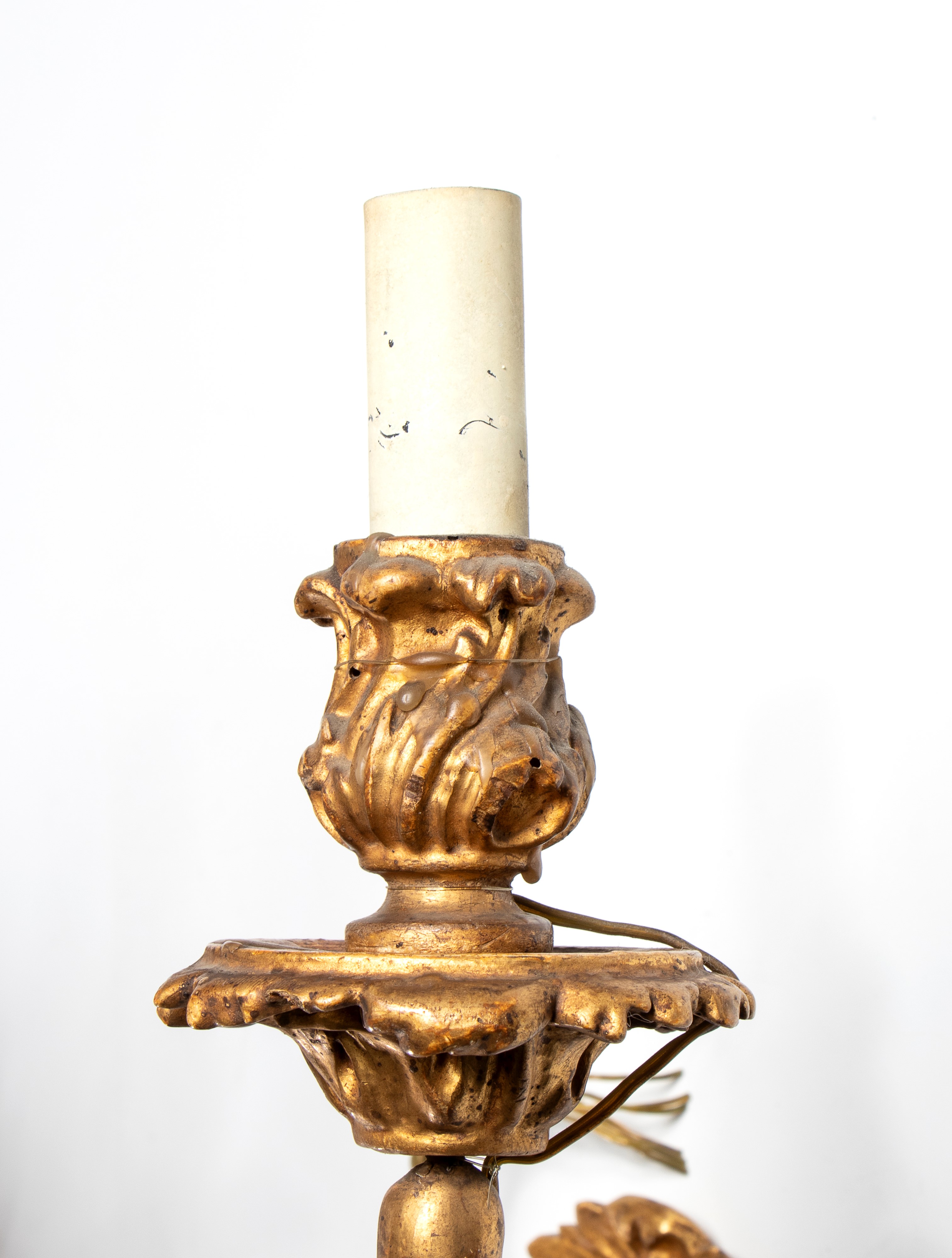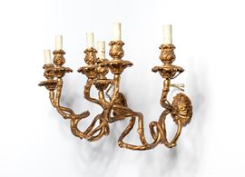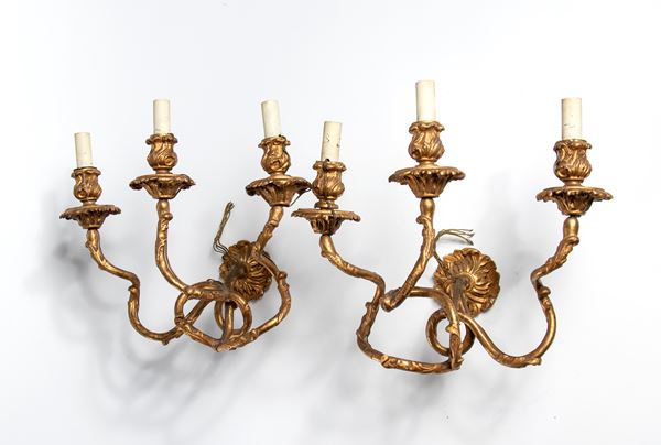 Pair of carved and gilded wooden wall sconces, Northern Italy, 19th century