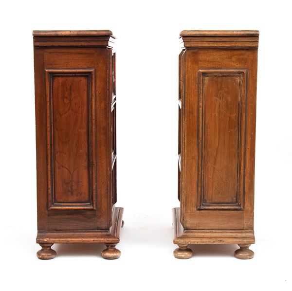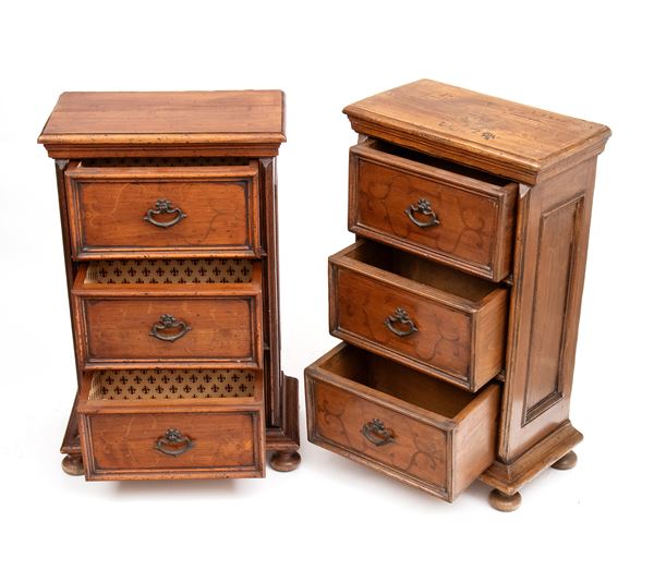 Pair of Italian walnut nightstands, Northern Italy, 19th century