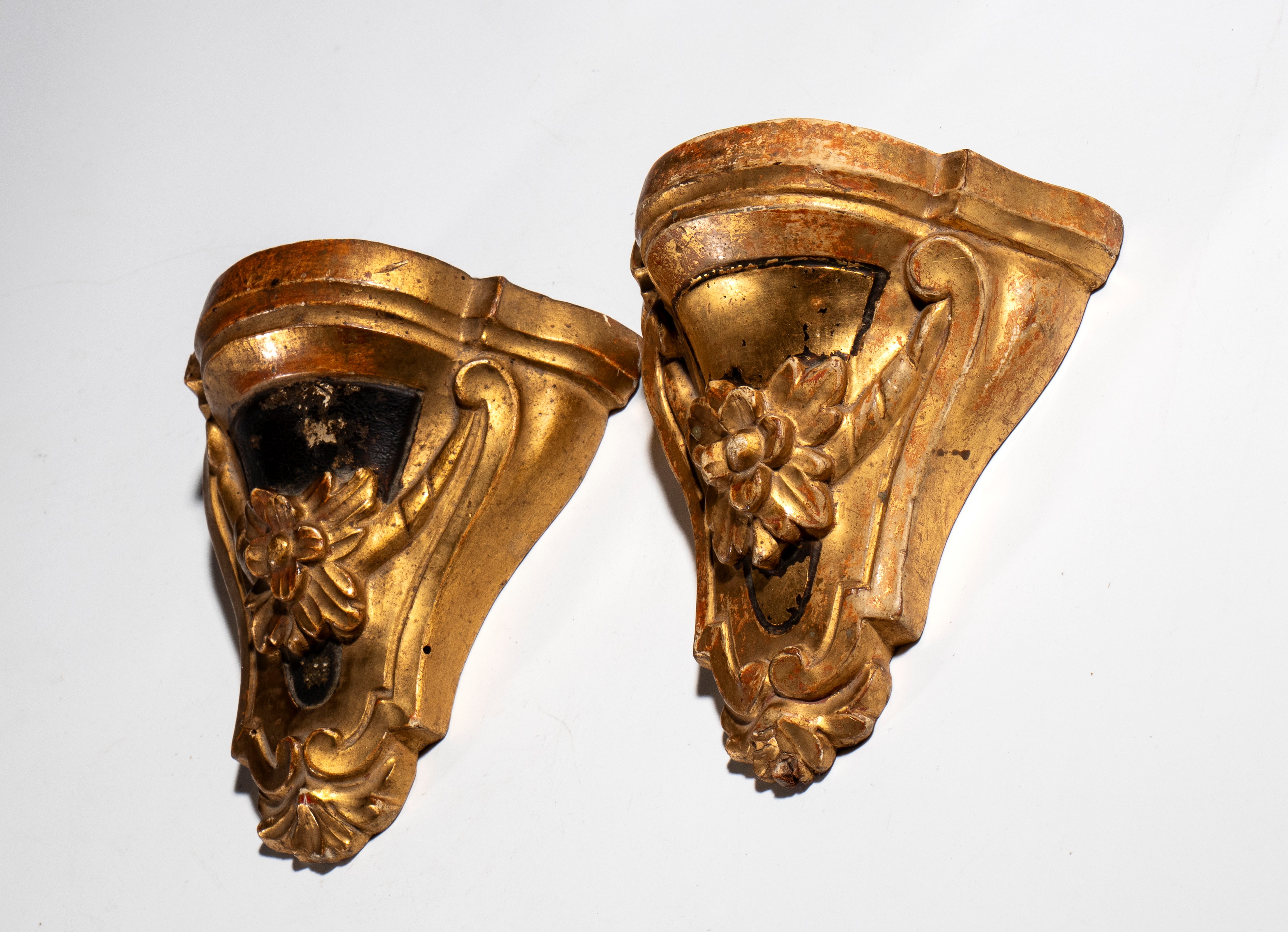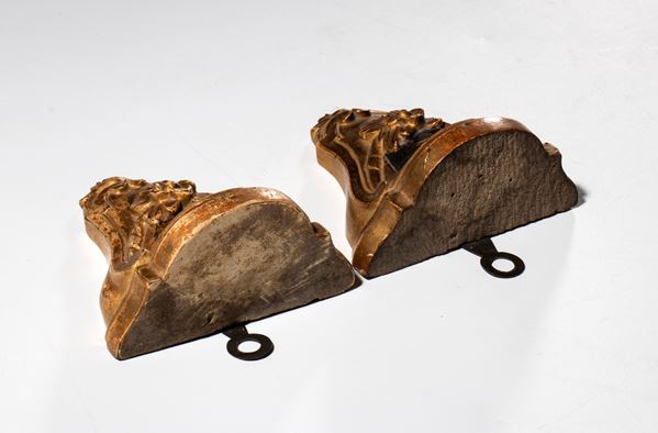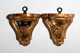 Pair of small carved and gilded shelves, Italy, 19th century