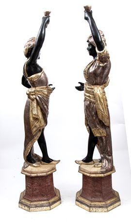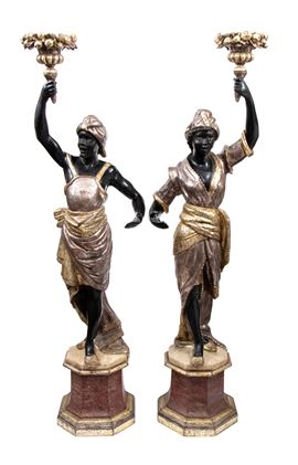 Pair of Venetian Moretto-style candle holders, Late 19th century โ€“ early 20th century