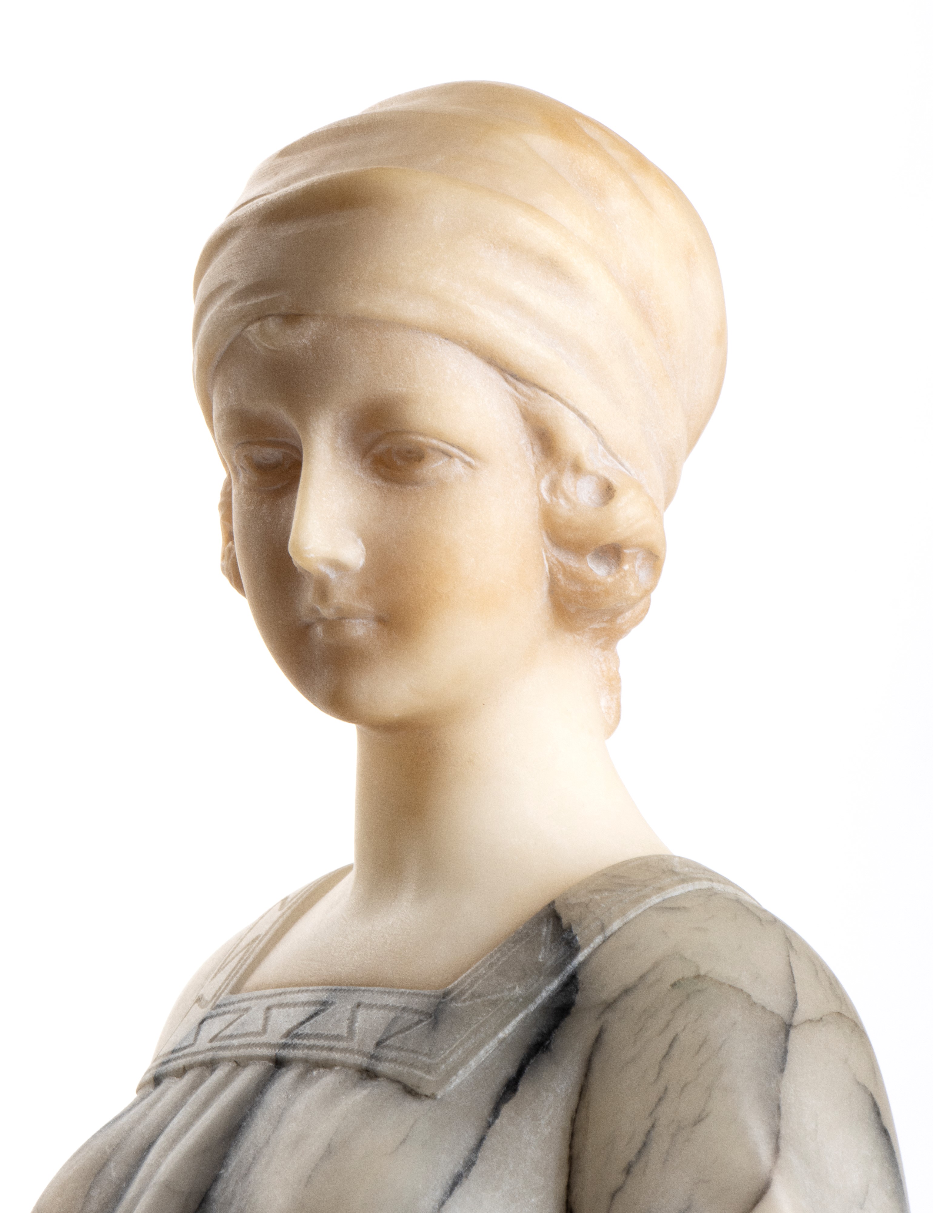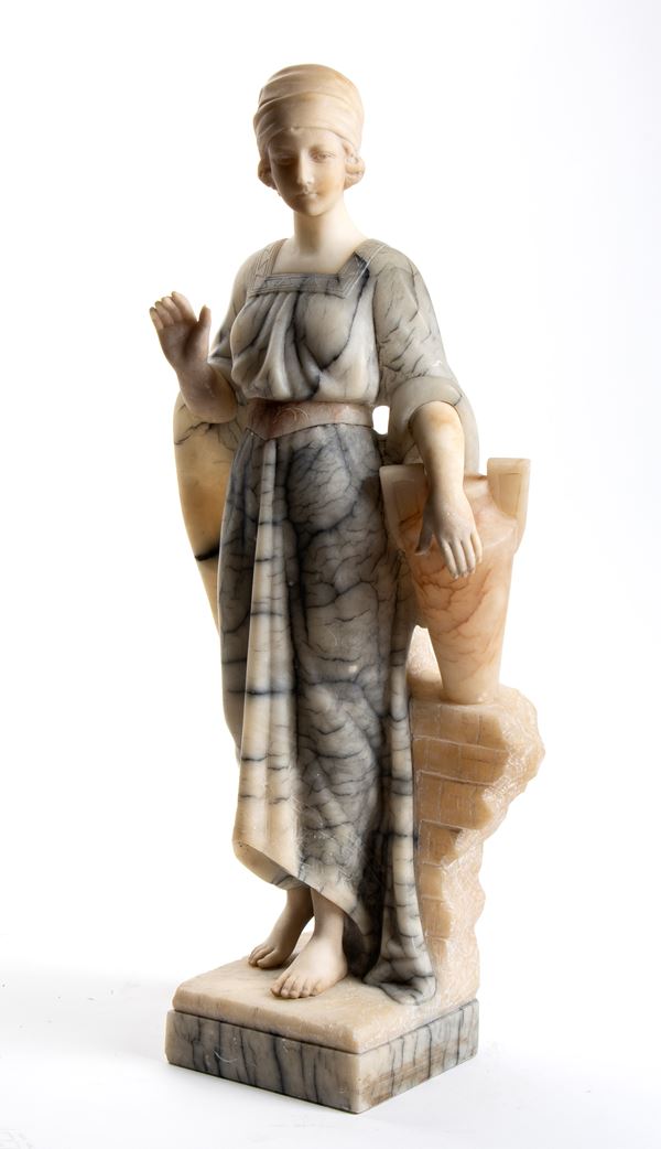 Rebecca at the well, Italian alabaster statue, 20th Century