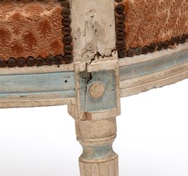 (circa 1800โ1840), carved and lacquered wood, made in Venice. Contoured backrest with a molded cornice, a band decorated with carved motifs, and fluted legs ending in spurs.