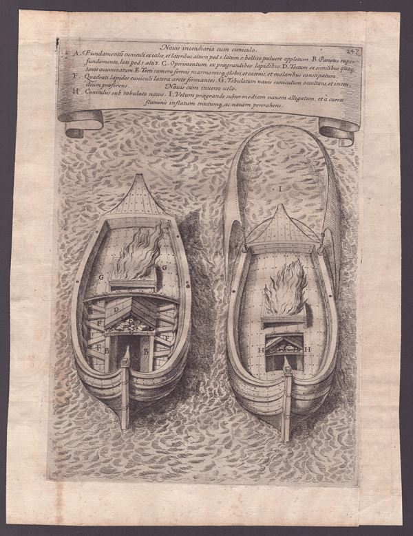Lotto di due incisioni tratte da "De bello Belgico" di Famiano Strada, pubblicato a Roma da Hermann Scheus, Vitalis Mascardi e Francesco Corbelletti tra 1640–1647.