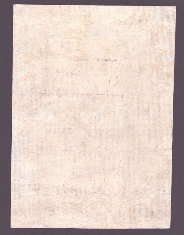 Molto bella, ben contrasta impressione su carta vergata. Esemplare rifilato, mancante la parte inferiore bianca, ma per il resto in ottimo stato di conservazione.