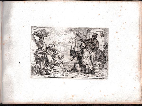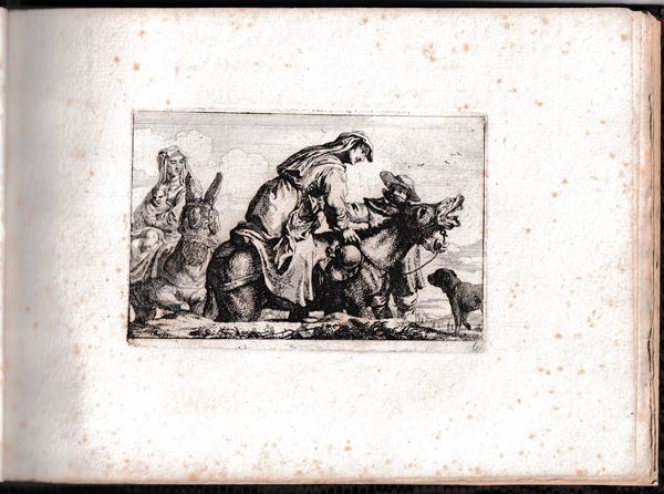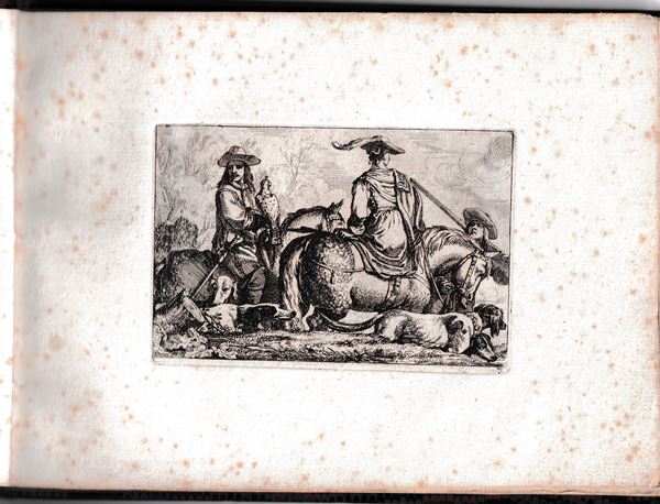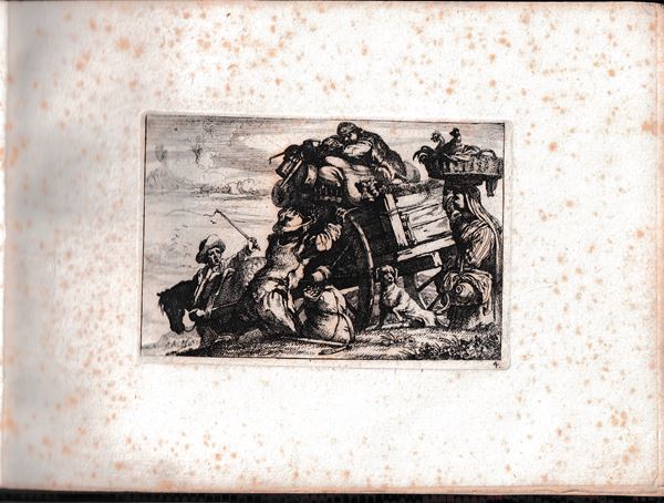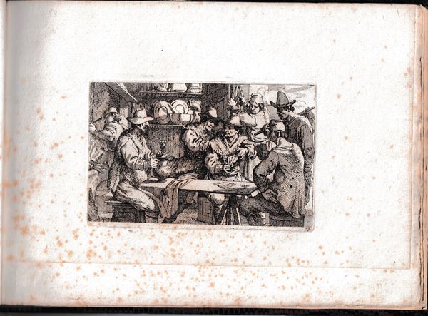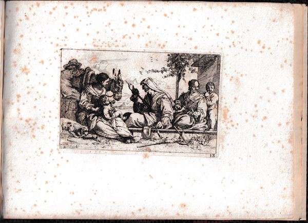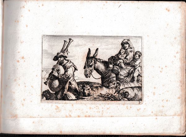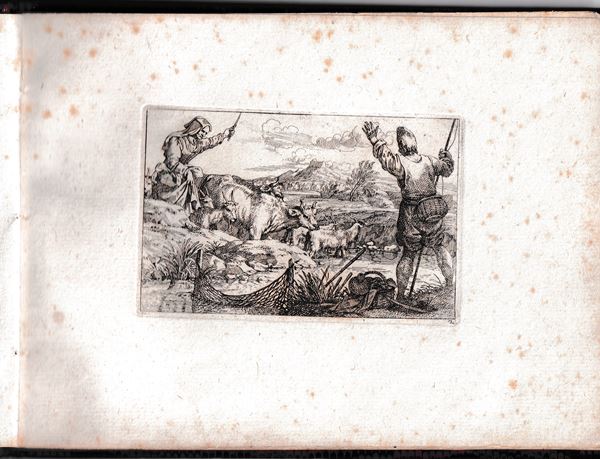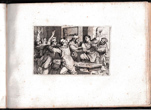 Molto belle impressioni con forte inchiostratura, stampate su carta vergata spessa. Legate in un album con legatura in carta marmorizzata. Un foglio con margine inferiore tagliato a metร . Fioriture sparse, ma per il resto in ottimo stato di conservazione.