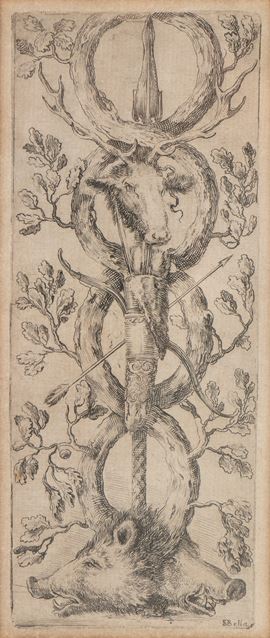 Pannello ornamentale con due teste di cinghiale, dalla serie "Ornamenti o grottesche"