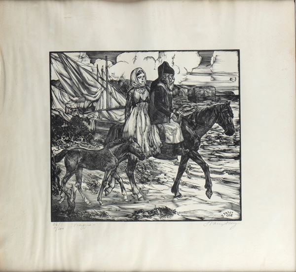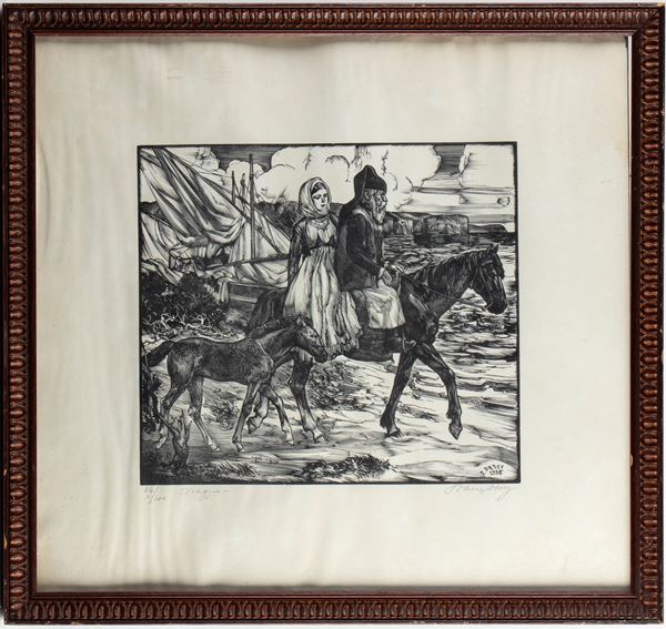 Xilografia, 250 x 275 mm (lastra), 400 x 430 mm (foglio). Titolo, tiratura 84/100, e firma a matita in basso.