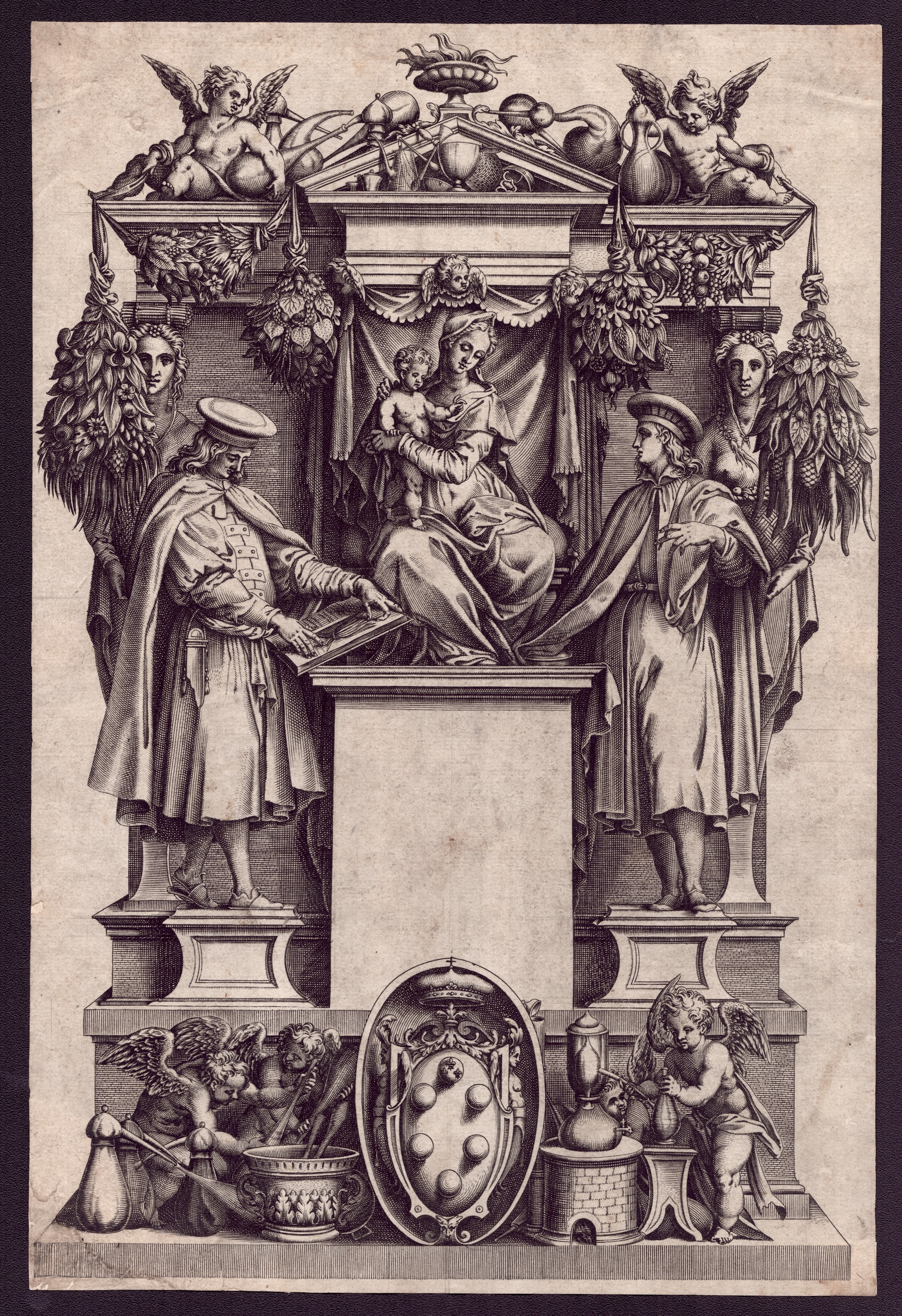 Bulino, 335 x 225 mm (foglio). Stato prima dell'aggiunta delle iscrizioni.