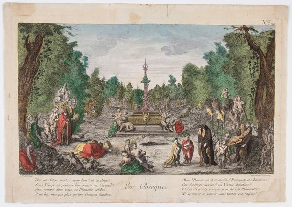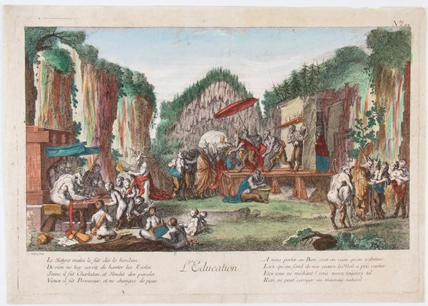 Lotto di due incisioni, copie in controparte da Claude Gillot dalla serie di "Vite dei satiri".