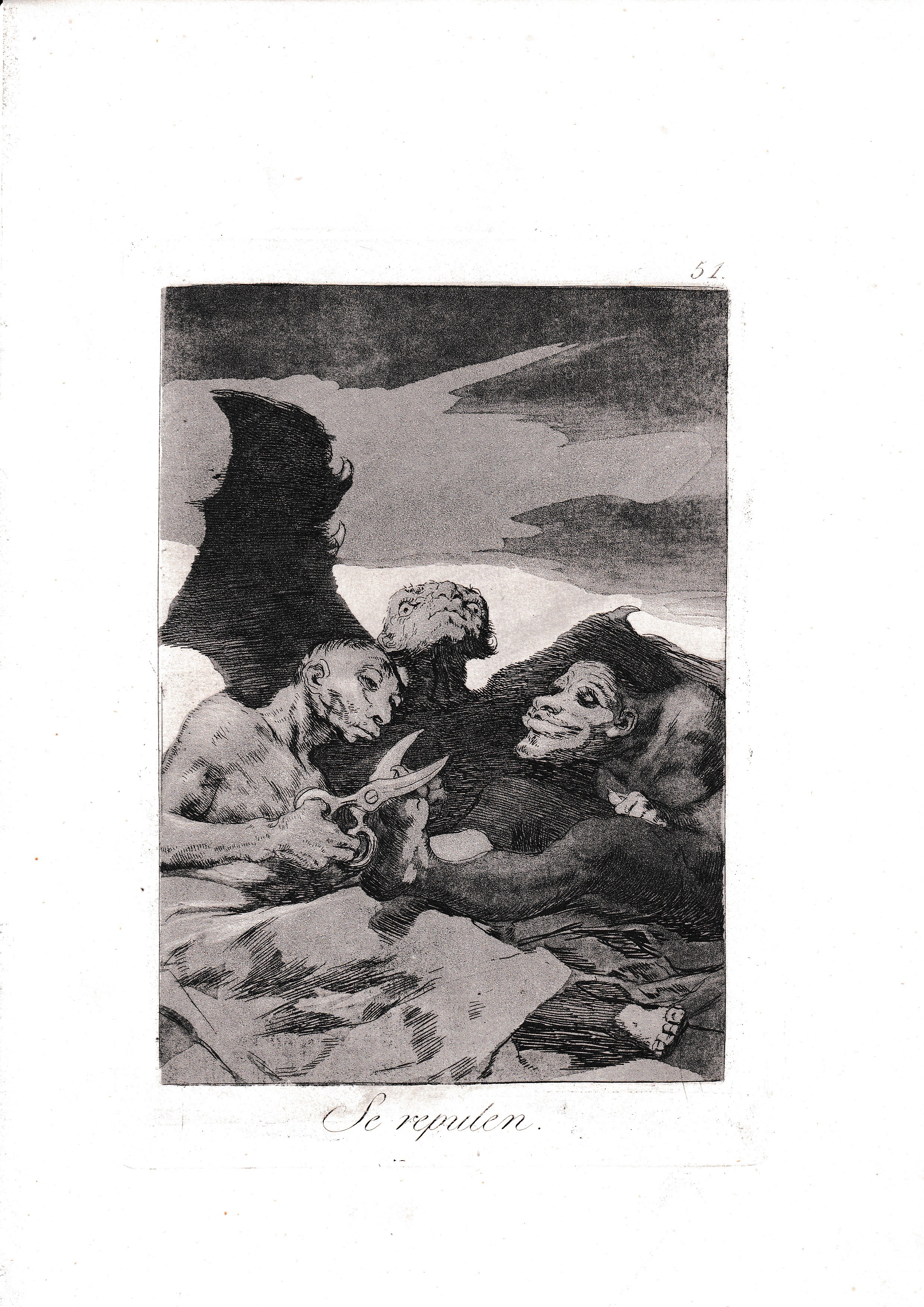 Tavola n. 51 dalla serie Los Caprichos. Acquaforte e acquatinta, 312 x 214 mm (foglio). II edizione del XII (1855).