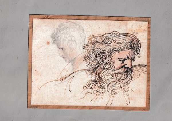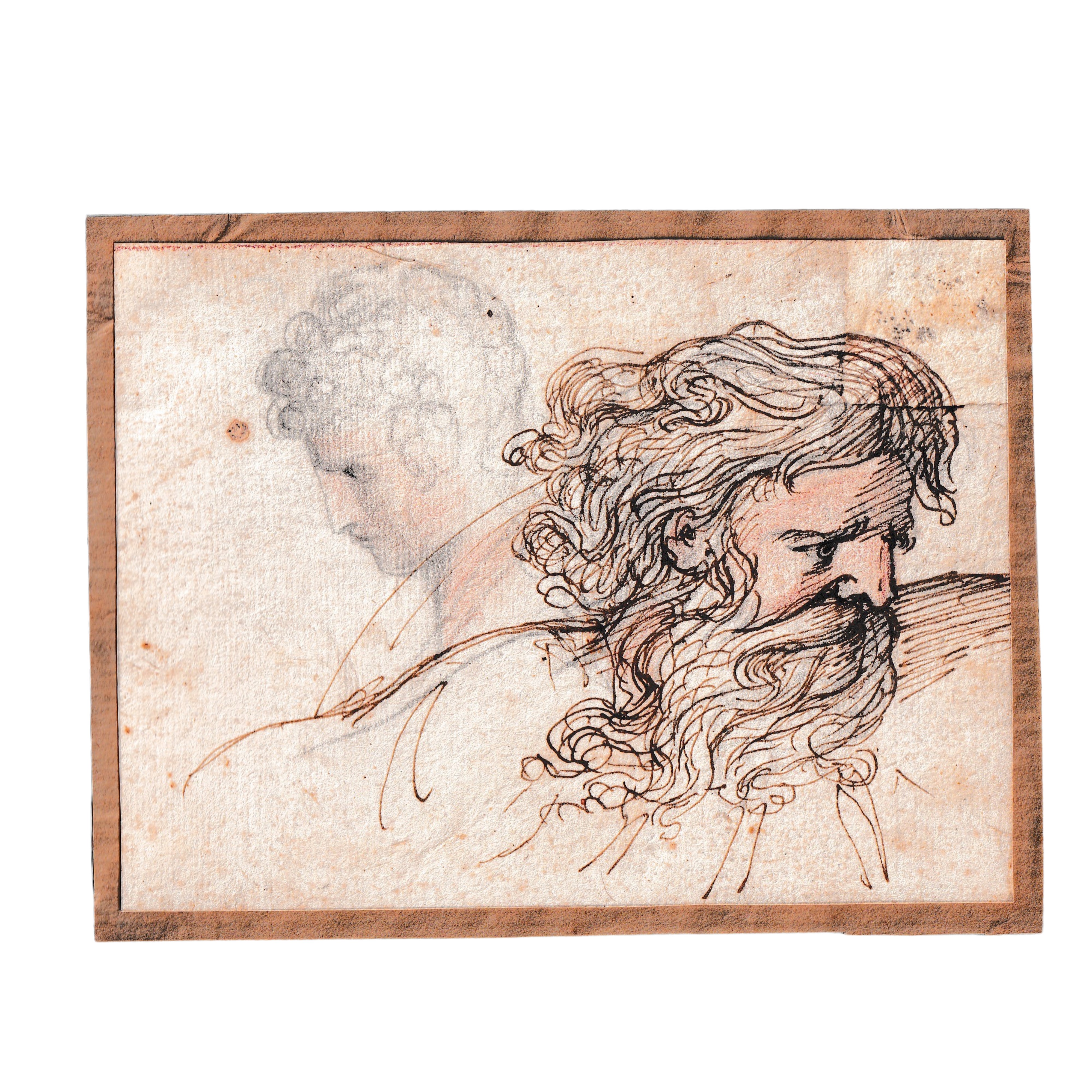 Inchiostro bruno, penna, matita e matita rossa su carta vergata spessa, 110 x 146 mm