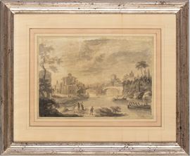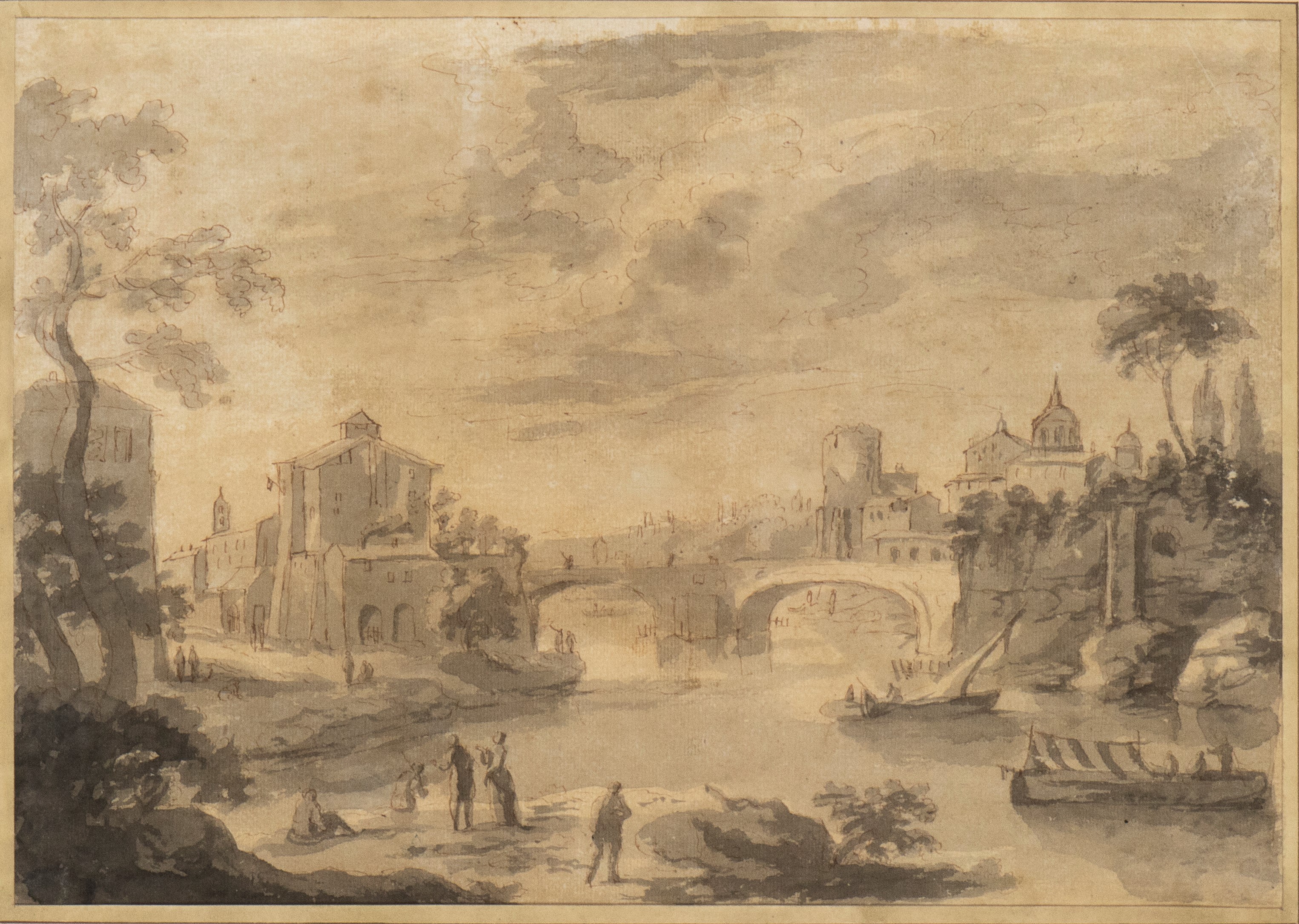 Veduta dell'Isola Tiberina a Roma, anonimo artista del XVII secolo