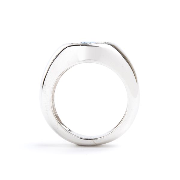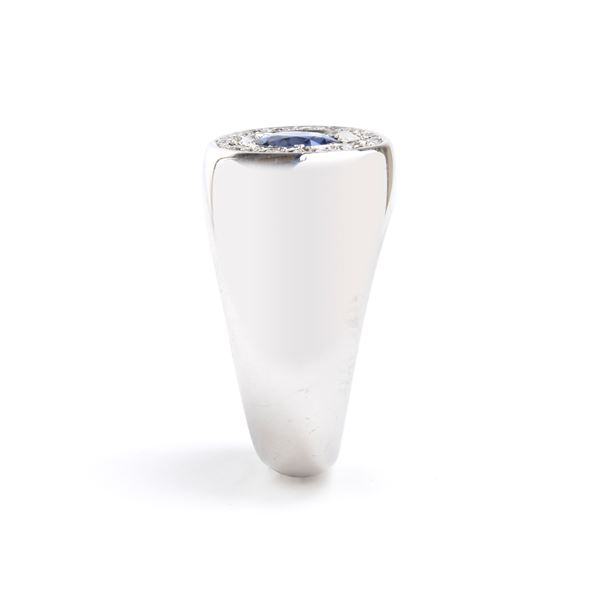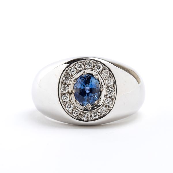 N. 01 oval shaped sapphire estimated to weight approximately 1.00 ct, and n. 16 brilliant cut diamonds estimated to weight a total of approx. 0.25 ct, F-G colour, VVS clarity, as measured with the setting.