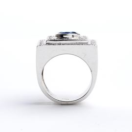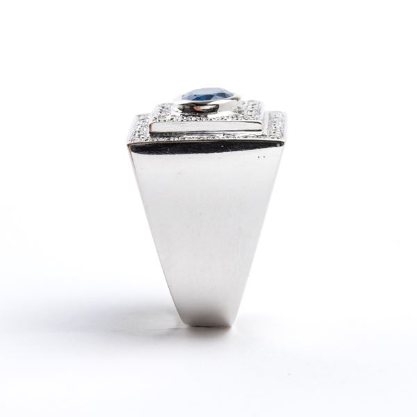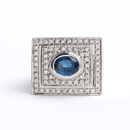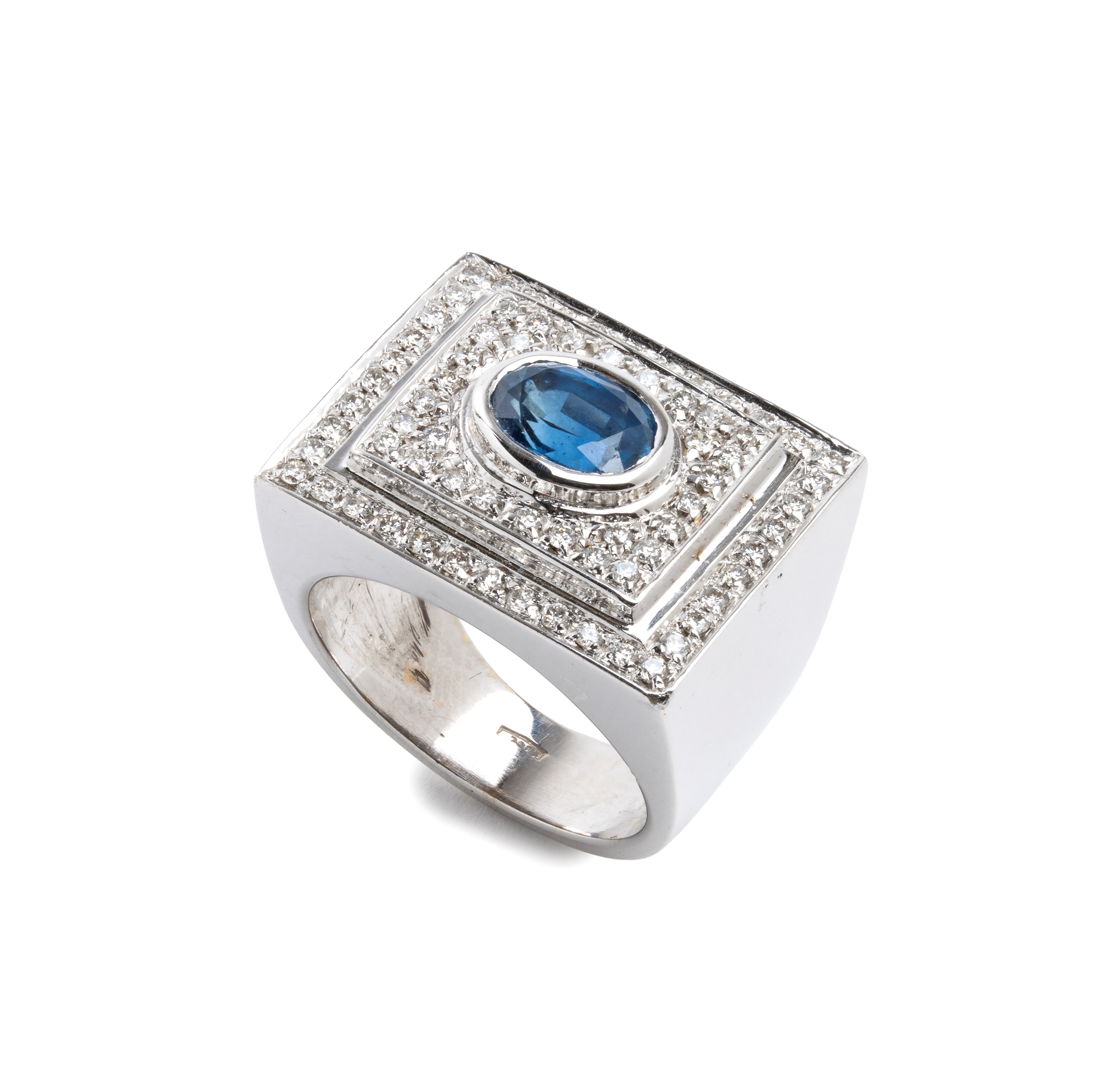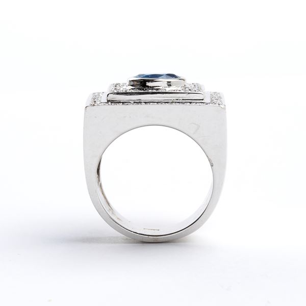 N. 70 round brilliant-cut diamonds, estimated total weight approx. 0.75 ct, colour F-G, clarity VVS-VS and n. 01 oval shaped, composite cut sapphire, approx. 1.40 ct, as measured with the setting.