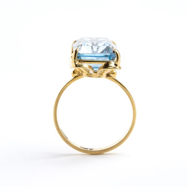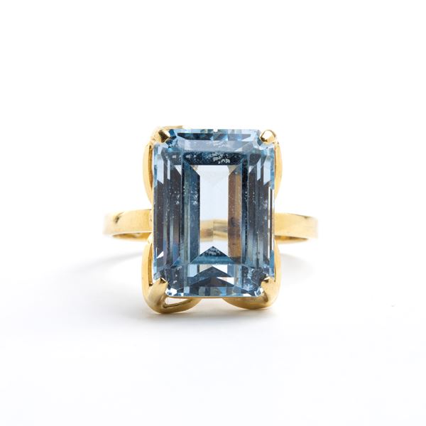 18k yellow gold, set with blue topaz.