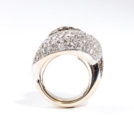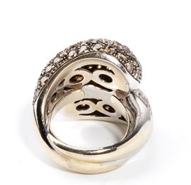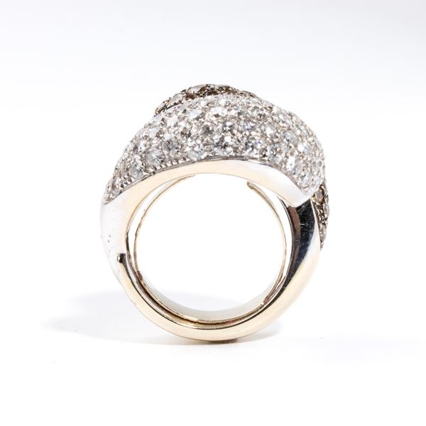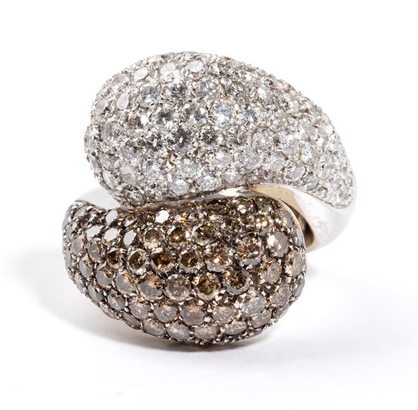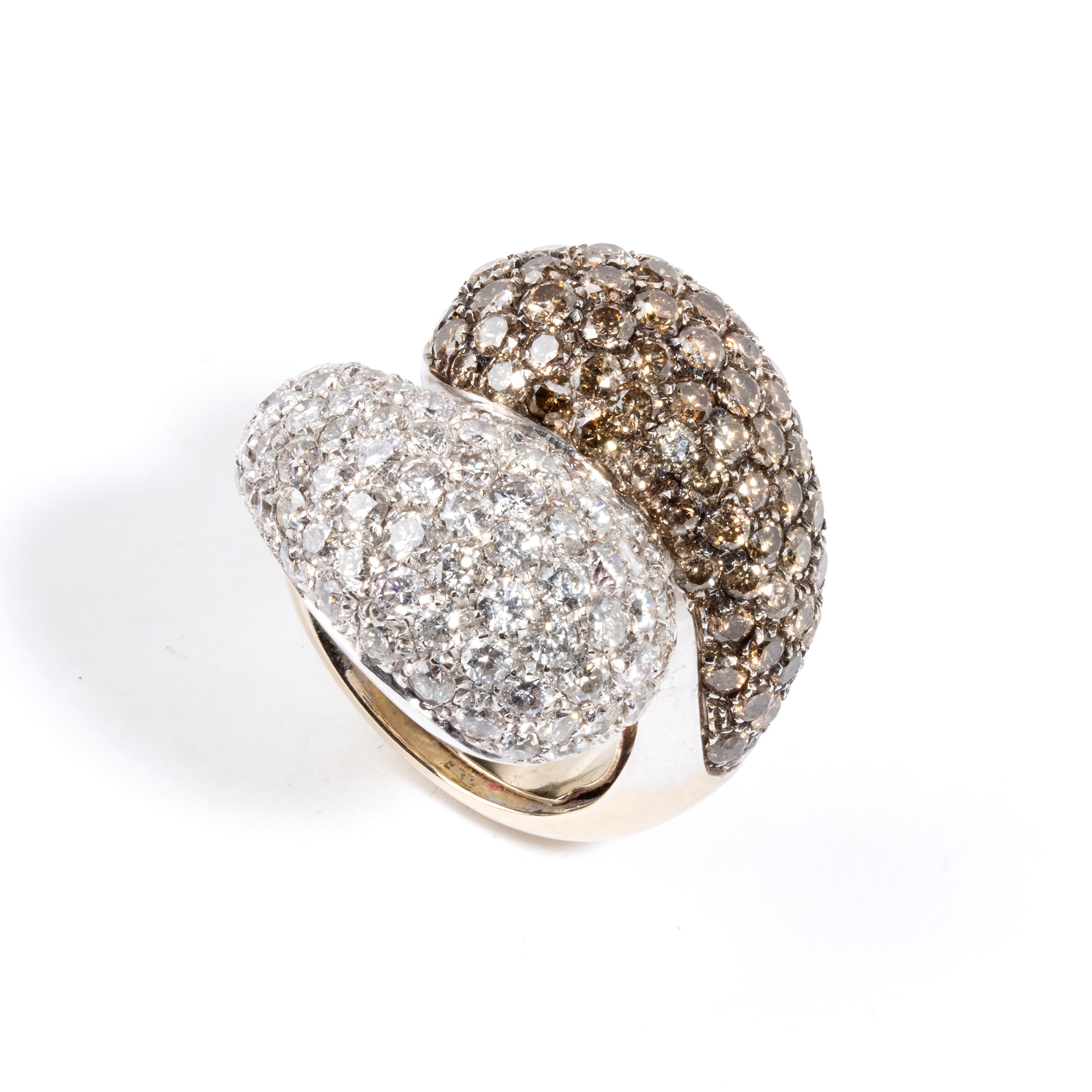 Round brilliant-cut diamonds, estimated to weigh a total of approx. 3.10 ct, G-H colour, VS-SI clarity and round brilliant-cut, fancy color brown diamonds, estimated to weigh a total of approx. 3.20 ct, as gauged and graded in the mount.