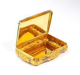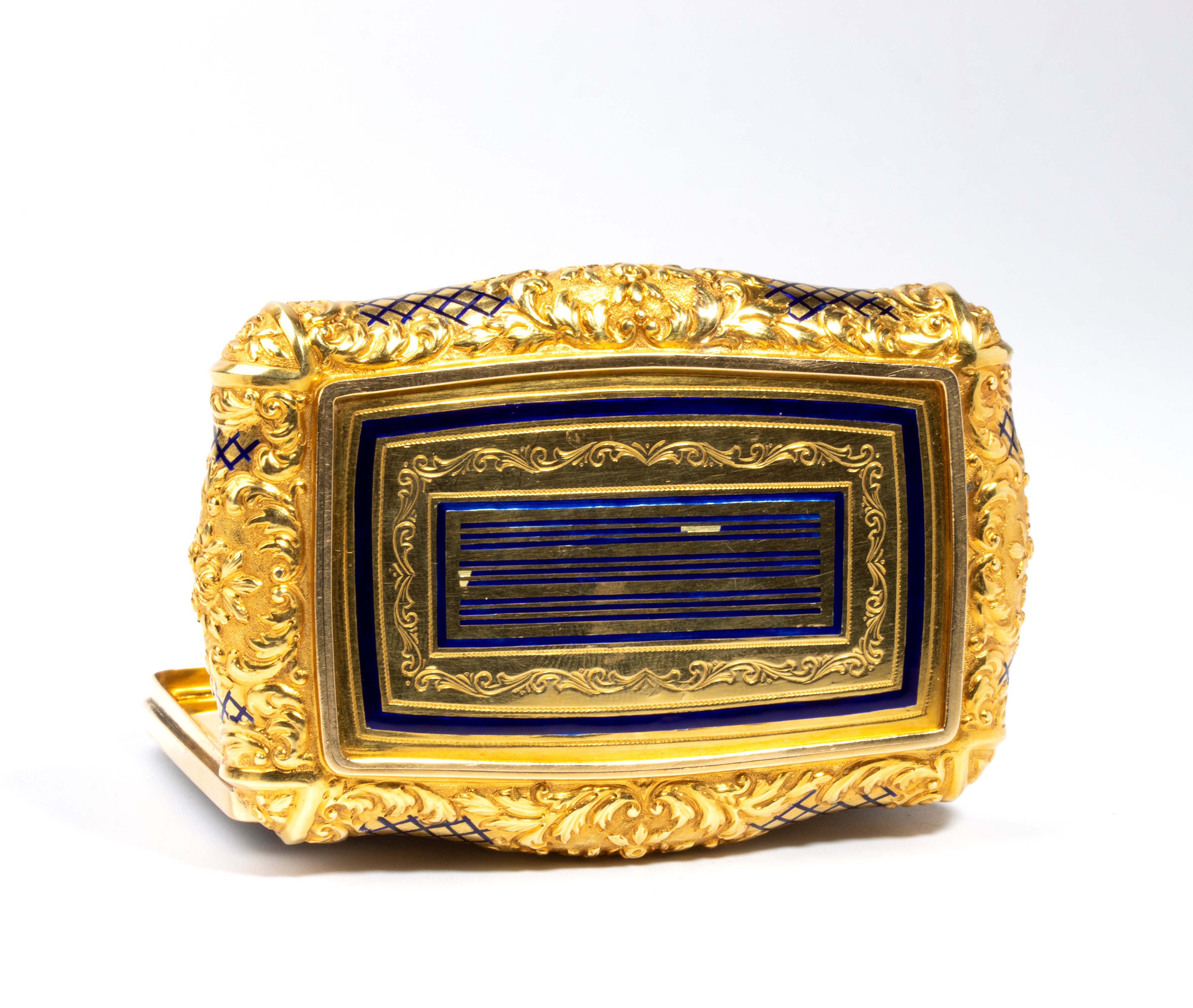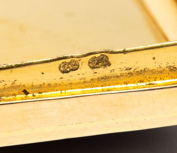 Hallmarked with the French gold marks in use in France in the 18th century during the Ancien Régime. Dimensions: 9 x 6.5 x 2 cm. Weight: 120 g.