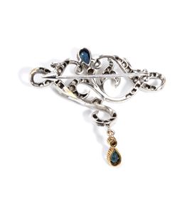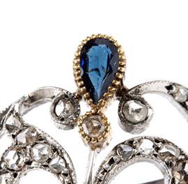 Gold diamond sapphire brooch
