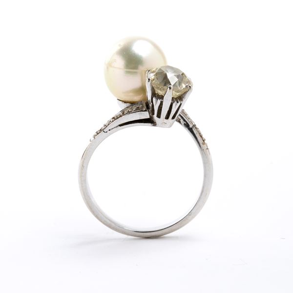 Old cut diamond and pearl gold ring