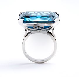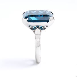 white gold ring set with royal blue topaz.