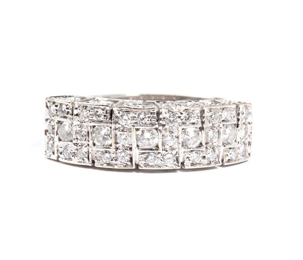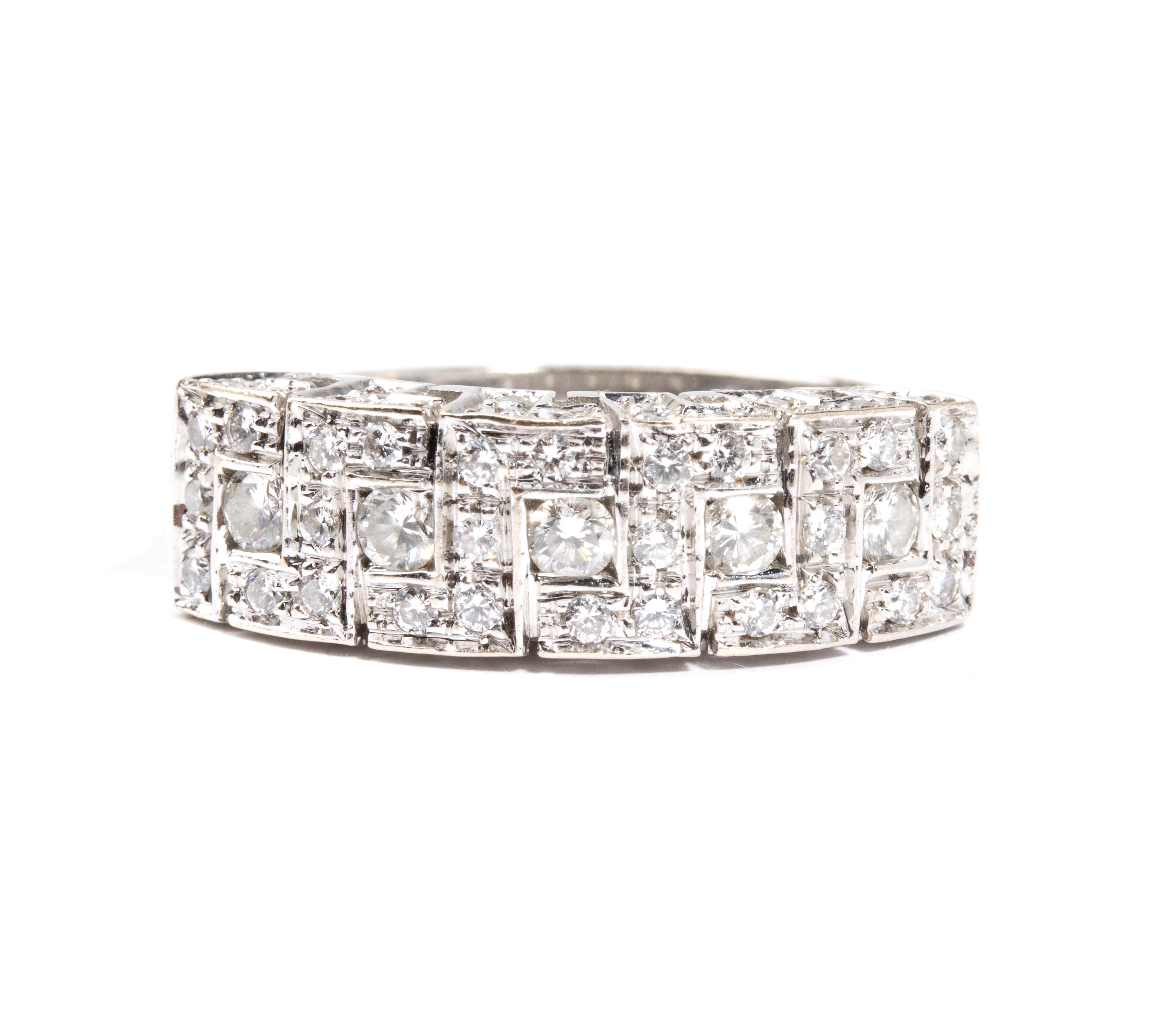 In 18k white gold, featuring geometric motifs set with round brilliant-cut diamonds, approx. 1.00 ct.