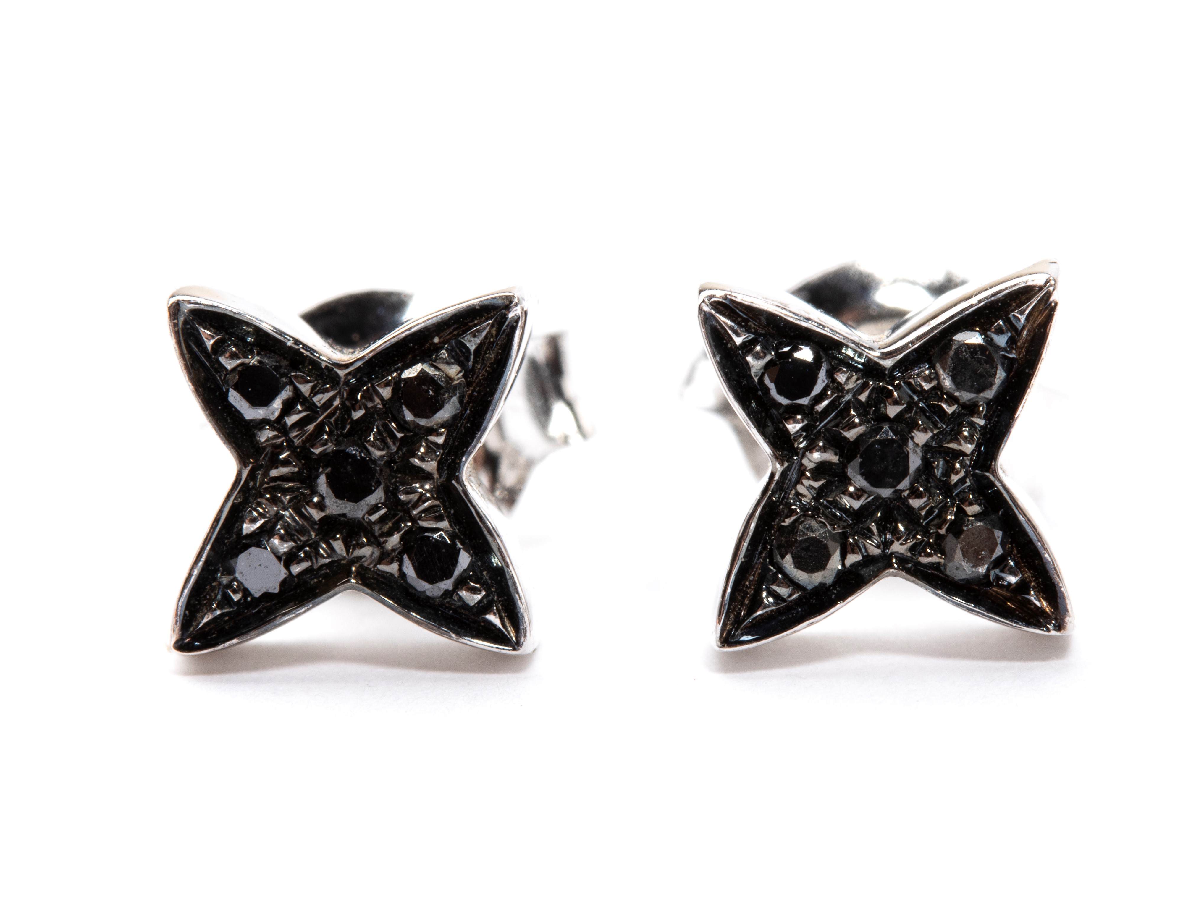 18k white gold, with pave set round brilliant-cut black diamonds, estimated to weigh a total of approx. 0.10 ct.