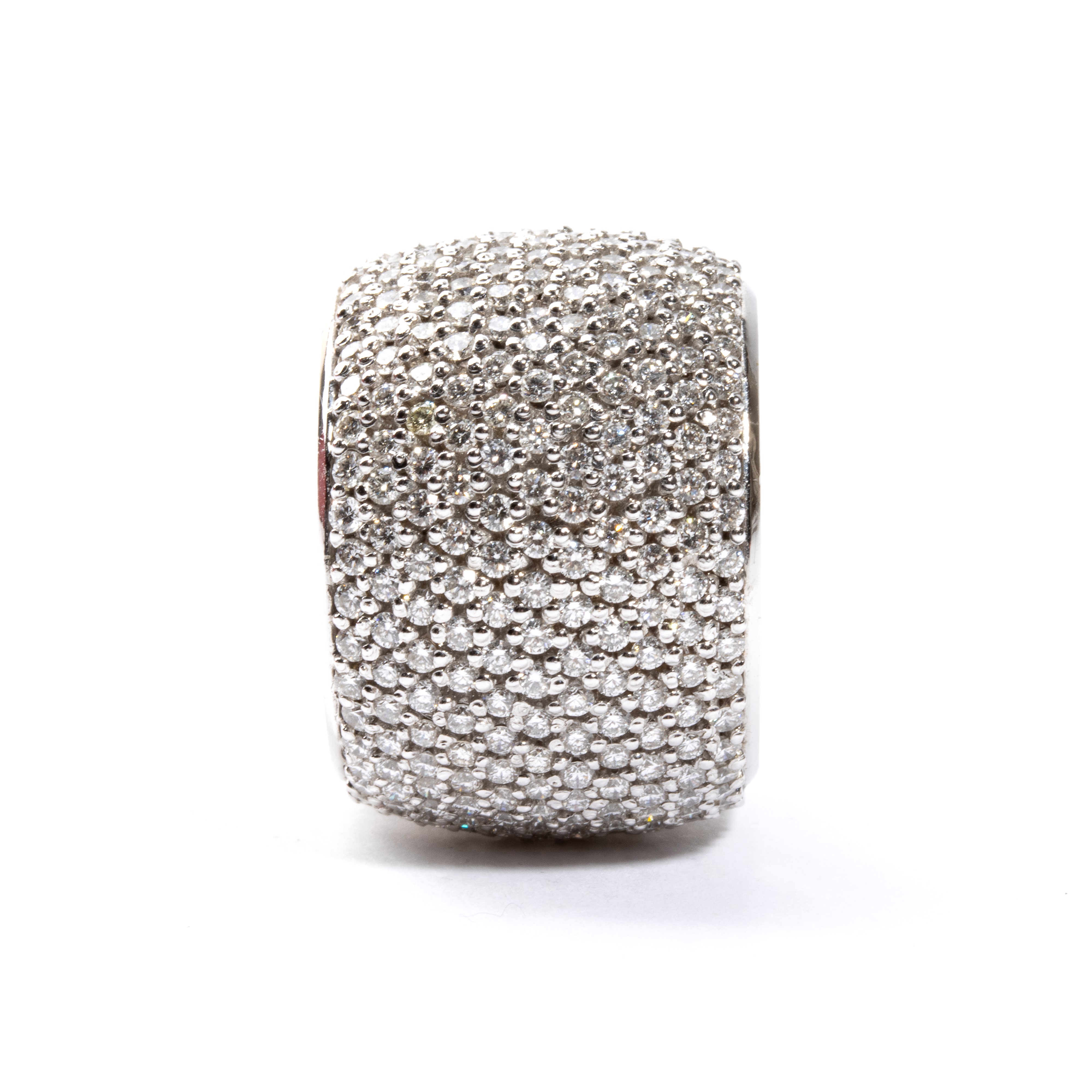 18k white gold ring, with pave ser round brilliant-cut diamonds, estimated total weight approx. 4.68 ct, colour F-G, clarity VVS-VS, as measured with the setting.