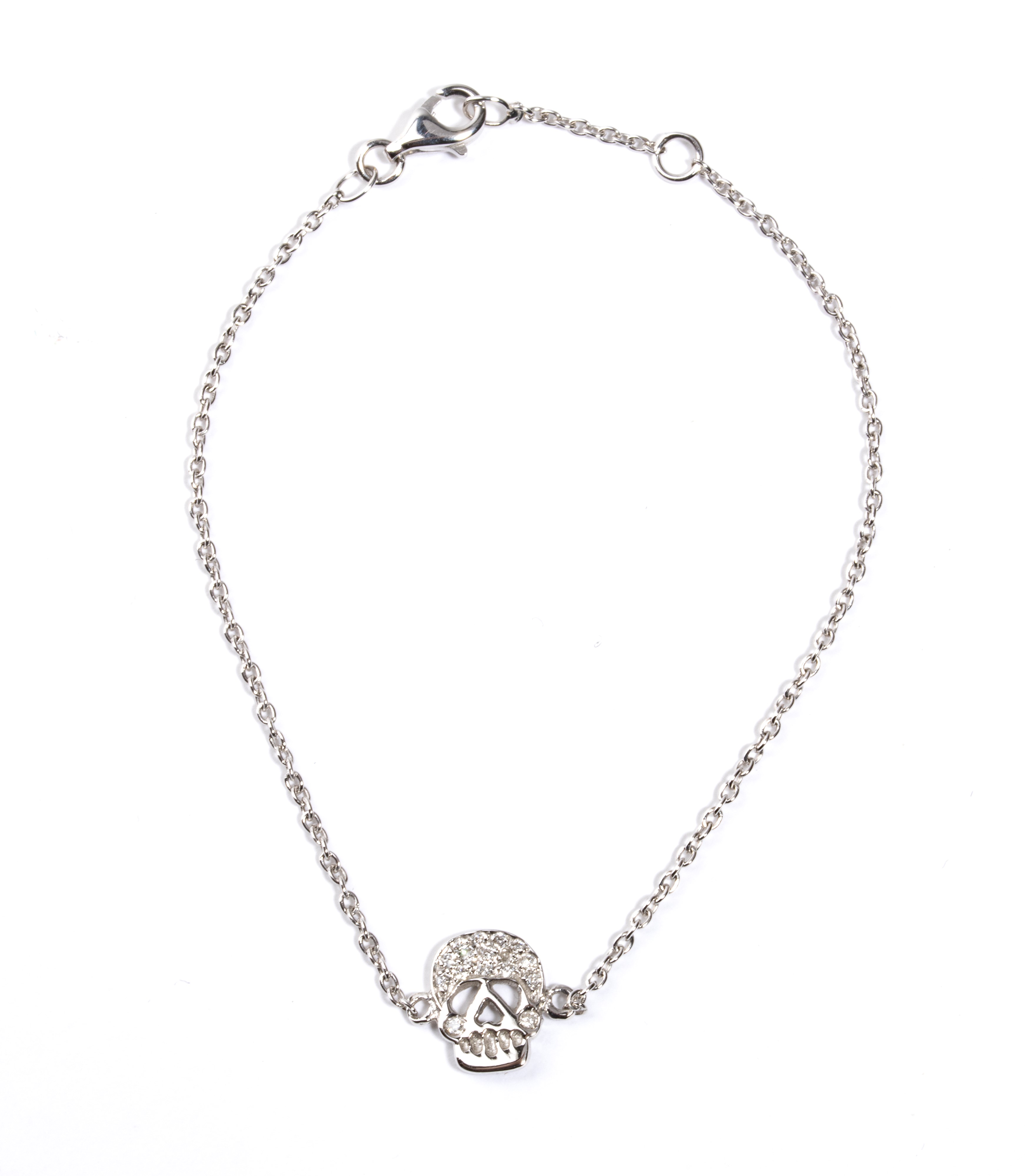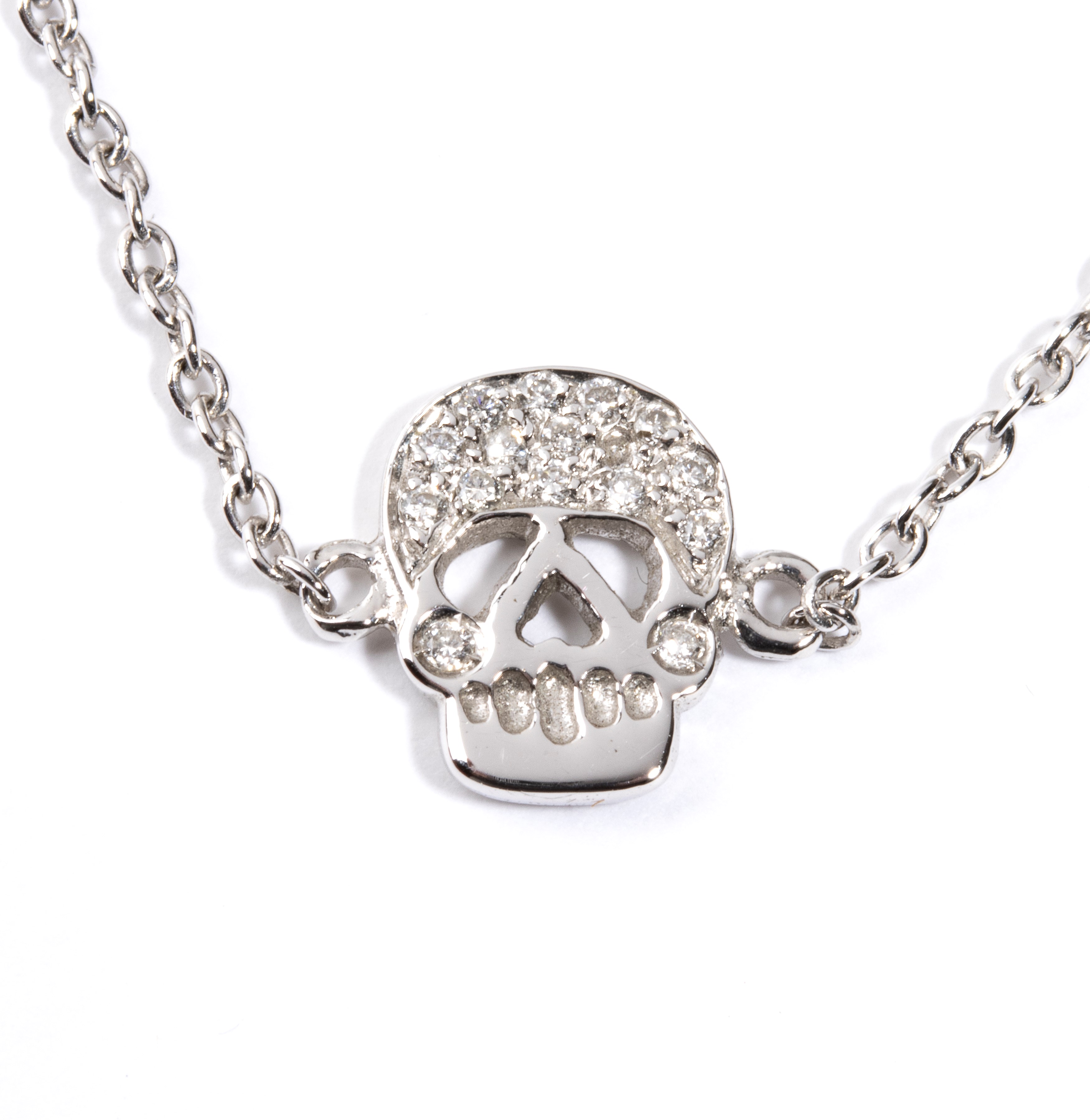 18k yellow gold cable chain, with central featuring the stylised silhouette of a skull, embellished with a pavé set round brilliant-cut diamonds, estimated to weigh a total of approx. 0.08 ct, colour F-G, clarity VVS-VS, as measured and graded in the mount.
