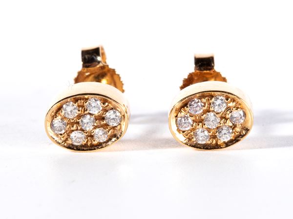 18k pink gold, set with n. 14 round brilliant cut diamonds estimated to weight a total of approx. 0.15 ct, F-G colour, VVS-VS clarity.