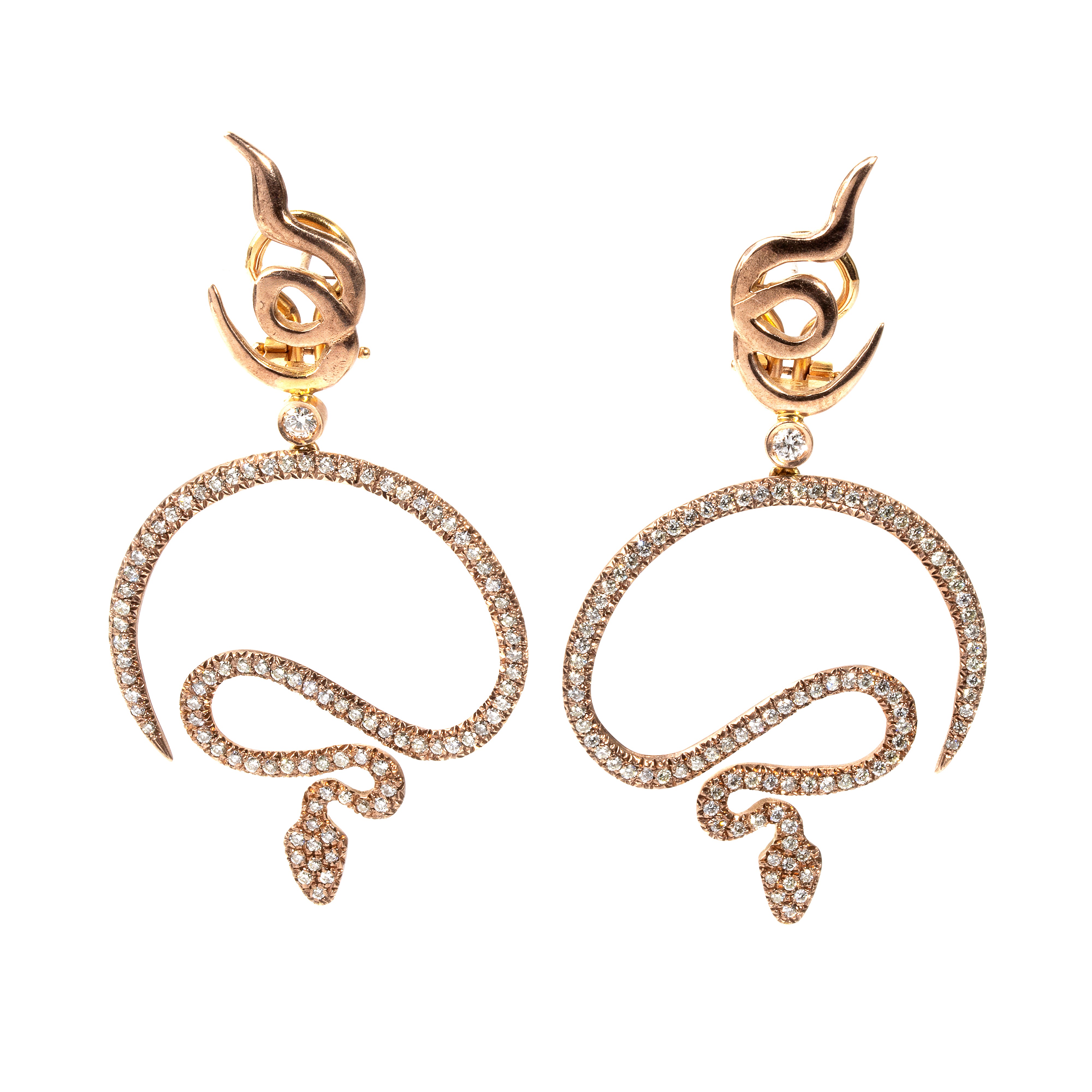 pink gold, featuring a sinuous pattern that mimics the snake moviment, with pavé set round brilliant cut diamonds estimated total weight approx. 1.34 ct, colour J-K, clarity VSSI, as measured and graded in the mount.