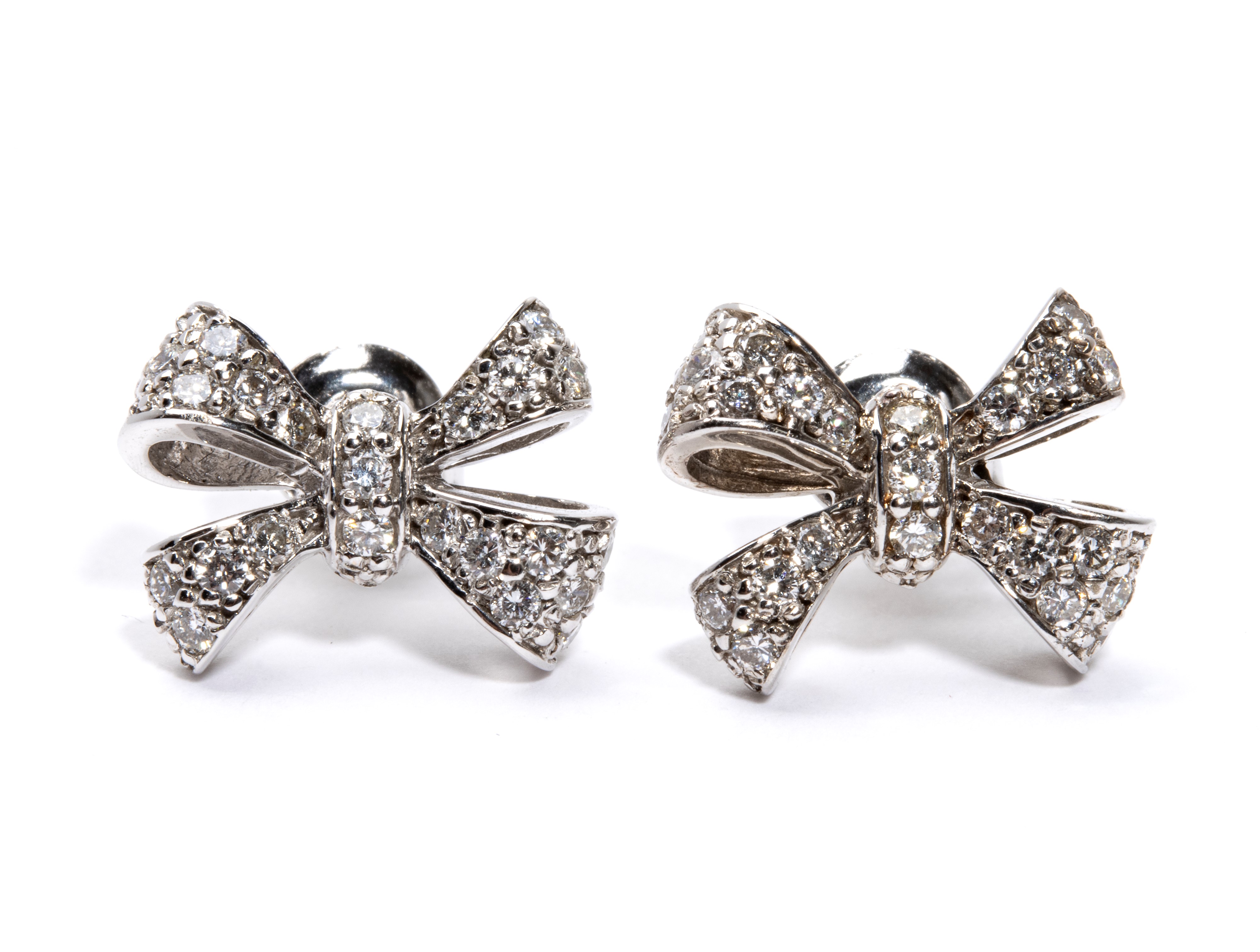 18k white gold53with pave set round brilliant-cut diamonds, estimated to weigh a total of approx. 0.12 ct, G colour, VVS-VS clarity, as gauged and graded in the mount.