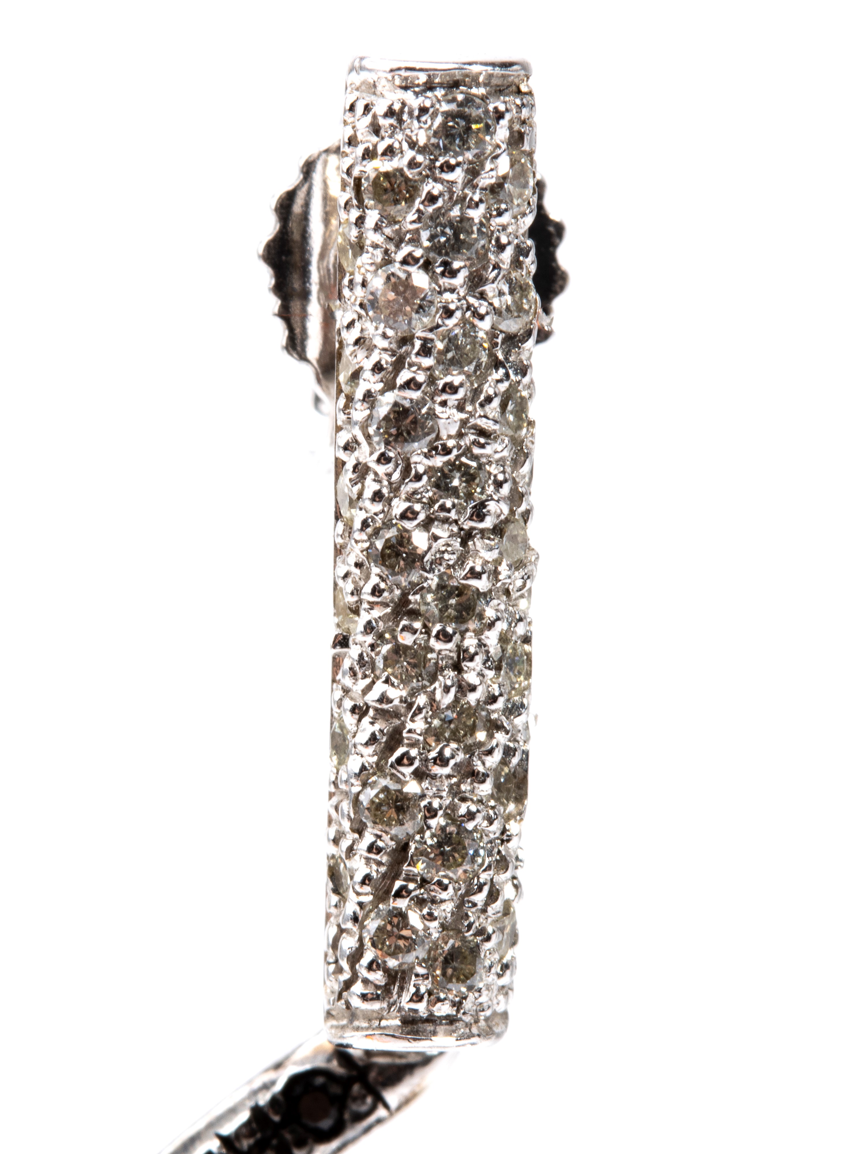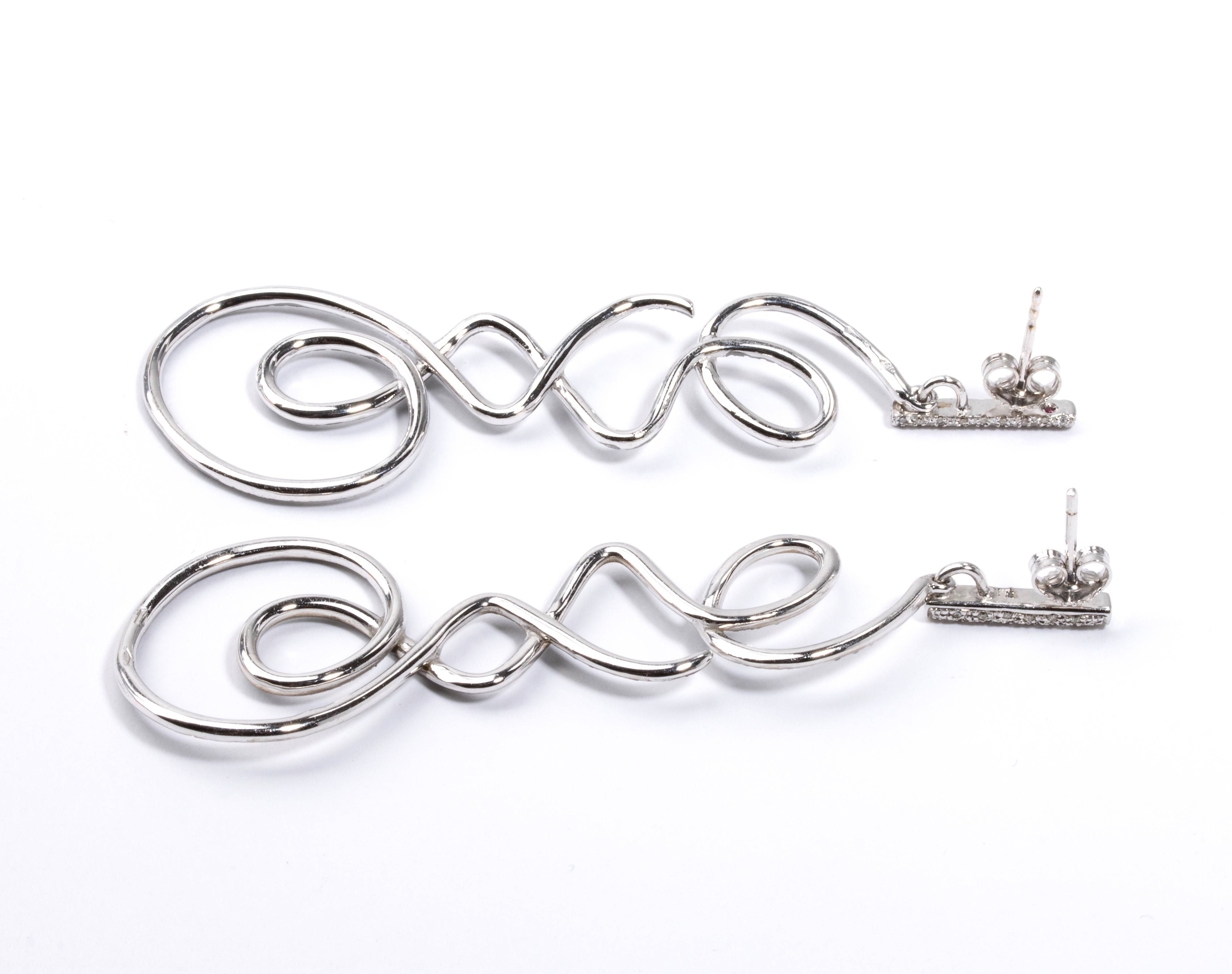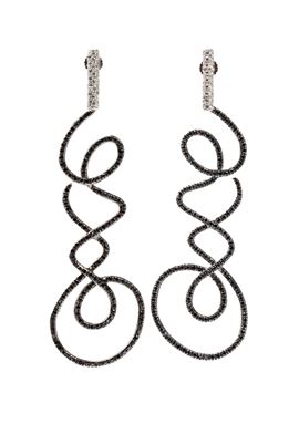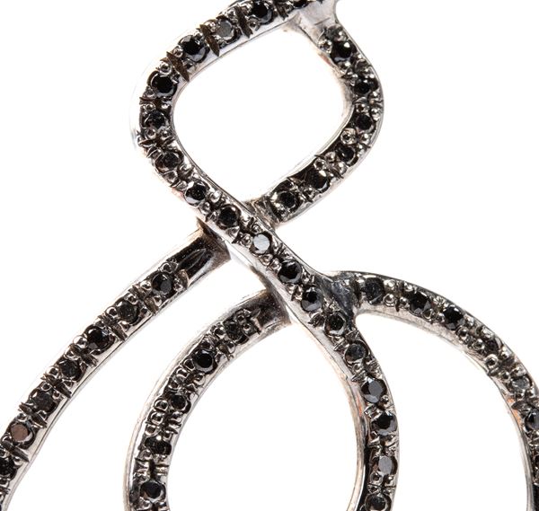18k white gold, featuring a ribbon scroll motif set with colourless and black diamonds.