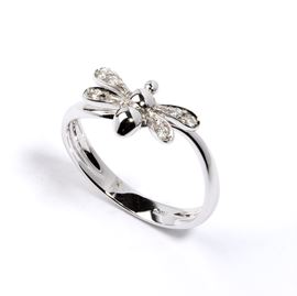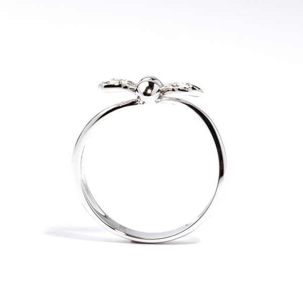 18k white gold, featuring a bug with wings highlighted by brilliant cut diamons, estimated total weight approx. 0.08 ct, colour G-H, clarity VS, as measured and graded in the setting.