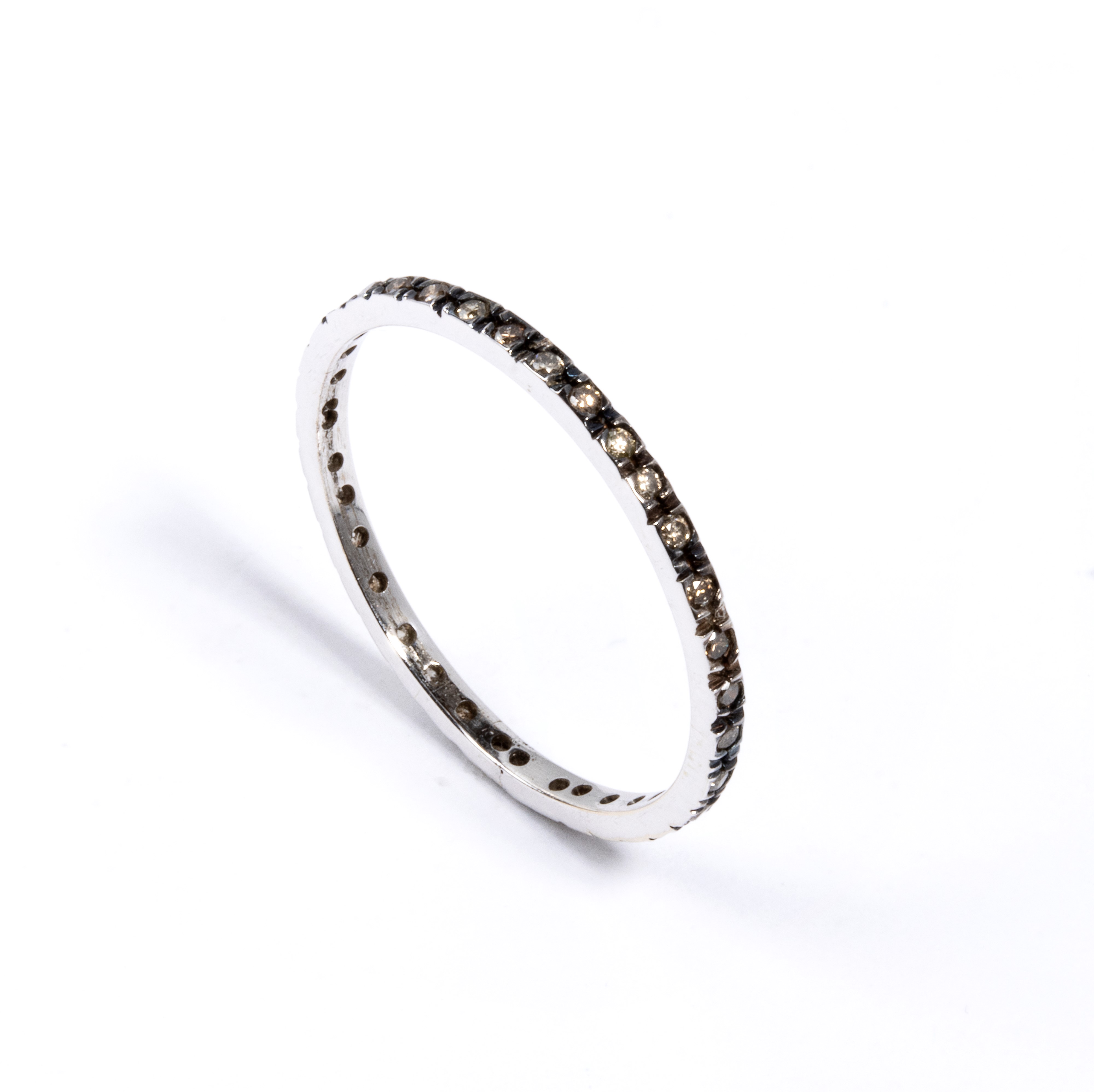 white gold, set with brown color, round brilliant-cut diamonds, estimated total weight approx. 0.65 ct, as measured and graded in the mount.