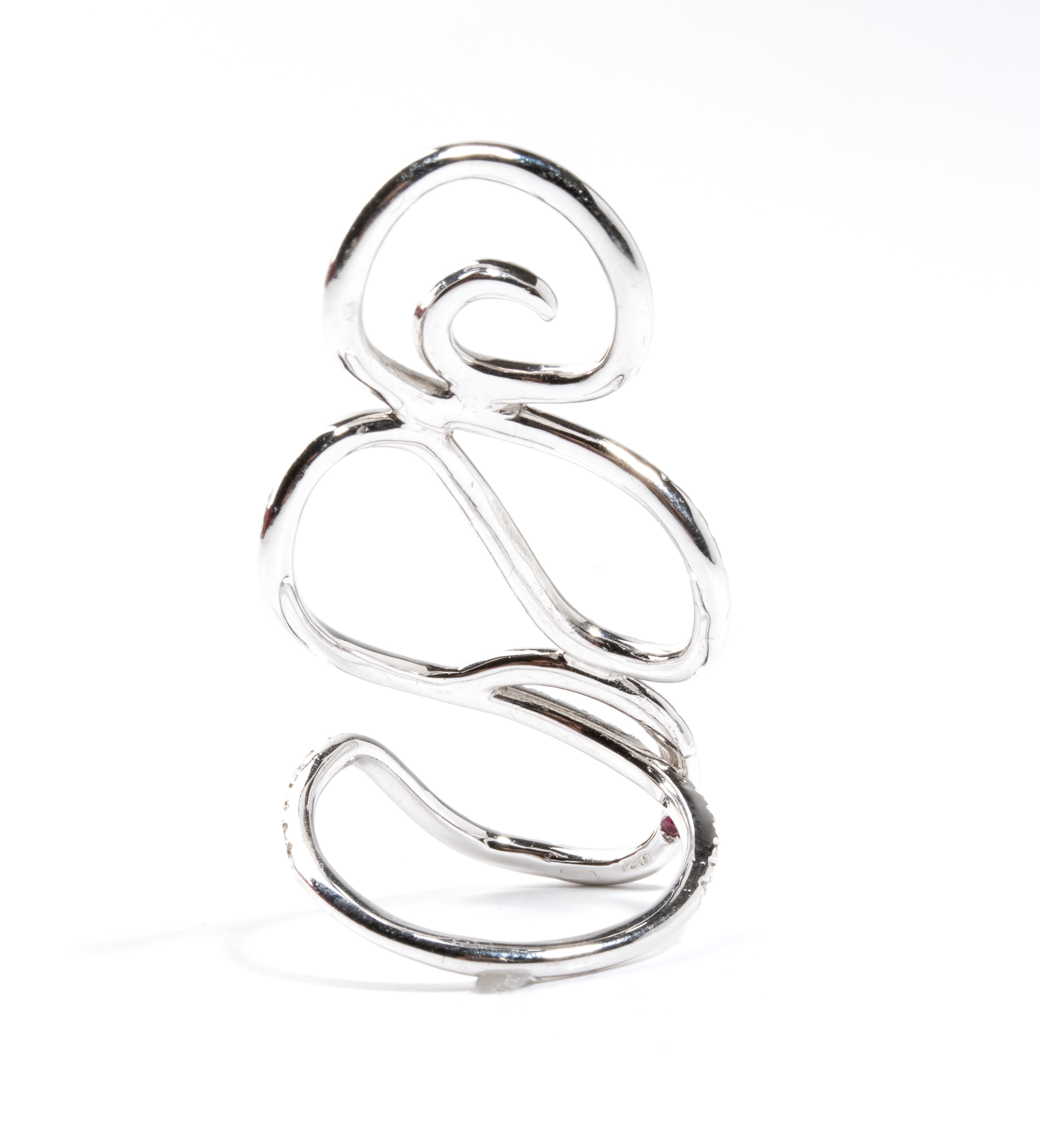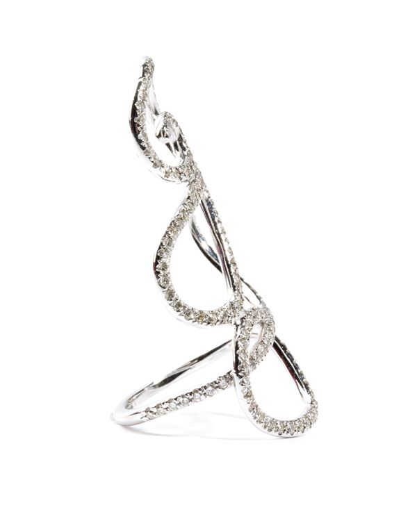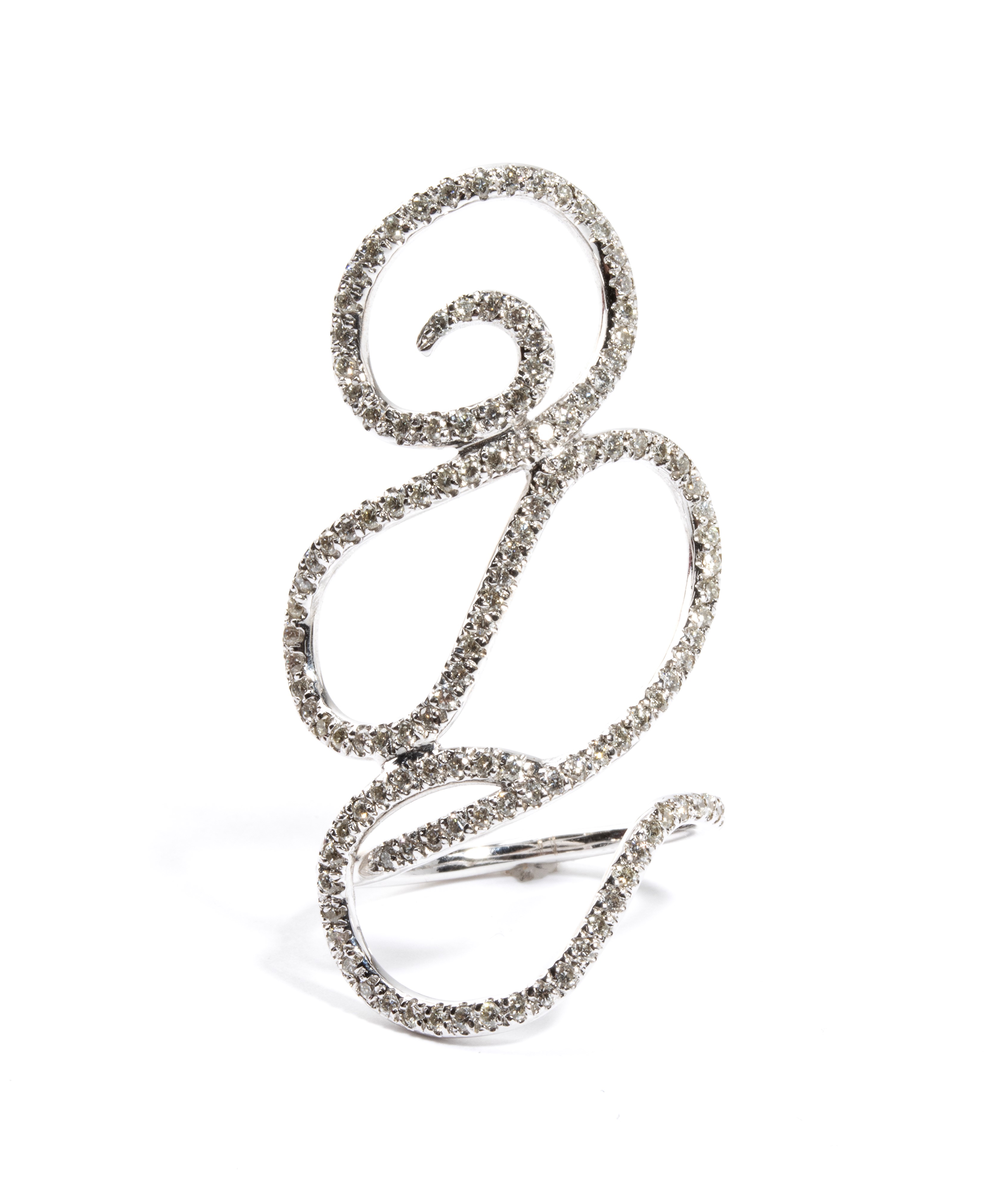 18k white gold, featuring a diamond-scroll ribbon pattern, estimated total weight approx. 1.03 ct, colour G-H, clarity VS-SI, as measured and graded in the mount.