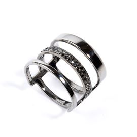 18k white gold ruthenium plated, designed as a three slender strands band set with black diamonds, estimated total weight approx. 0.70 ct.