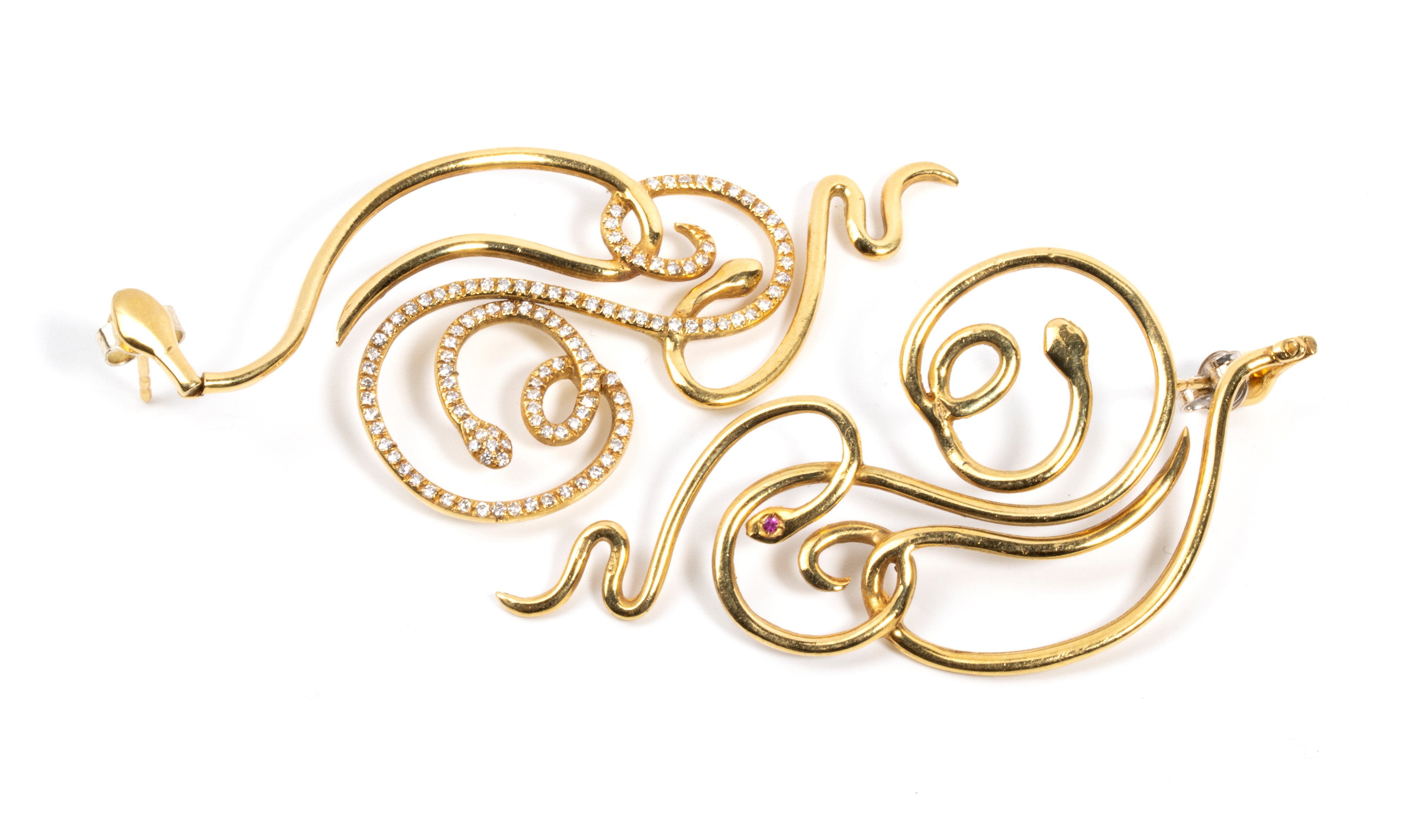 9k white gold, featuring a sinuous pattern that mimics intertwined snakes, with pavé set round brilliant cut diamonds estimated total weight approx. 1.62 ct, colour H, clarity VS, as measured and graded in the mount.