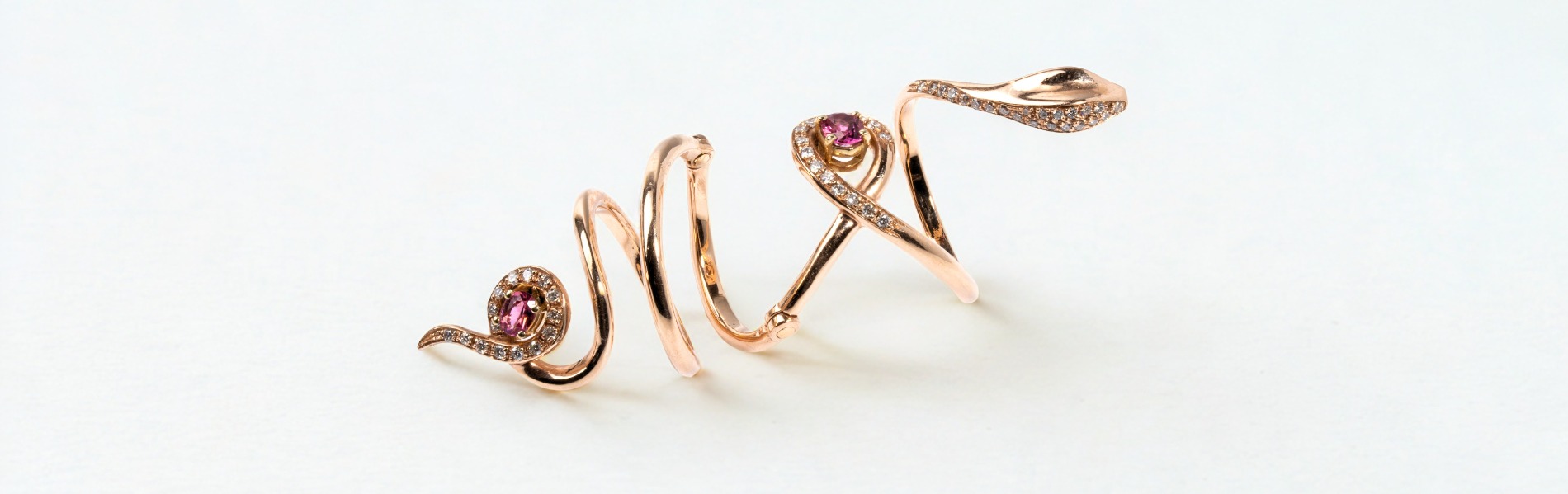 pink gold, featuring a sinuous pattern that mimics the snake moviment, with pavé set round brilliant cut diamonds [..]
