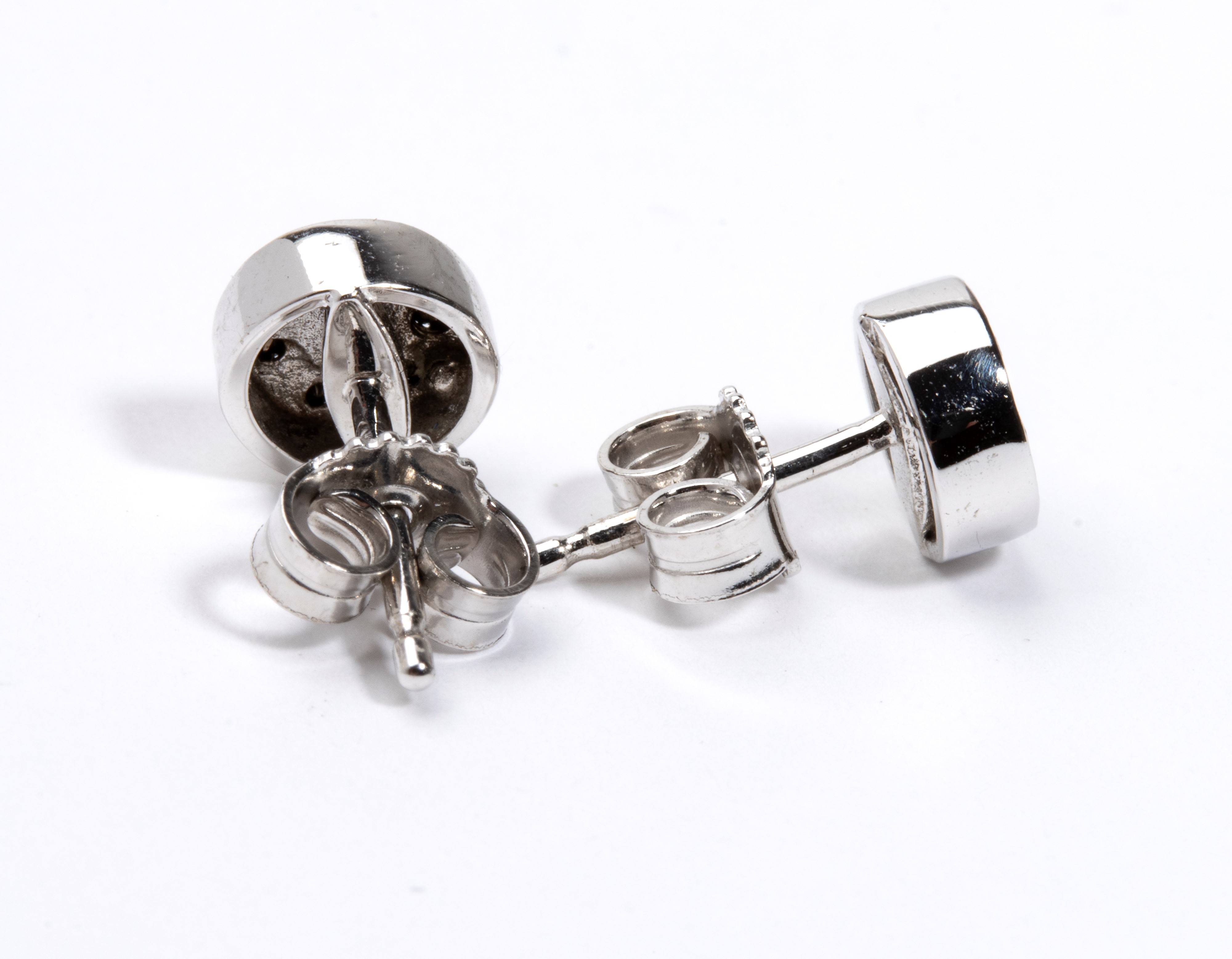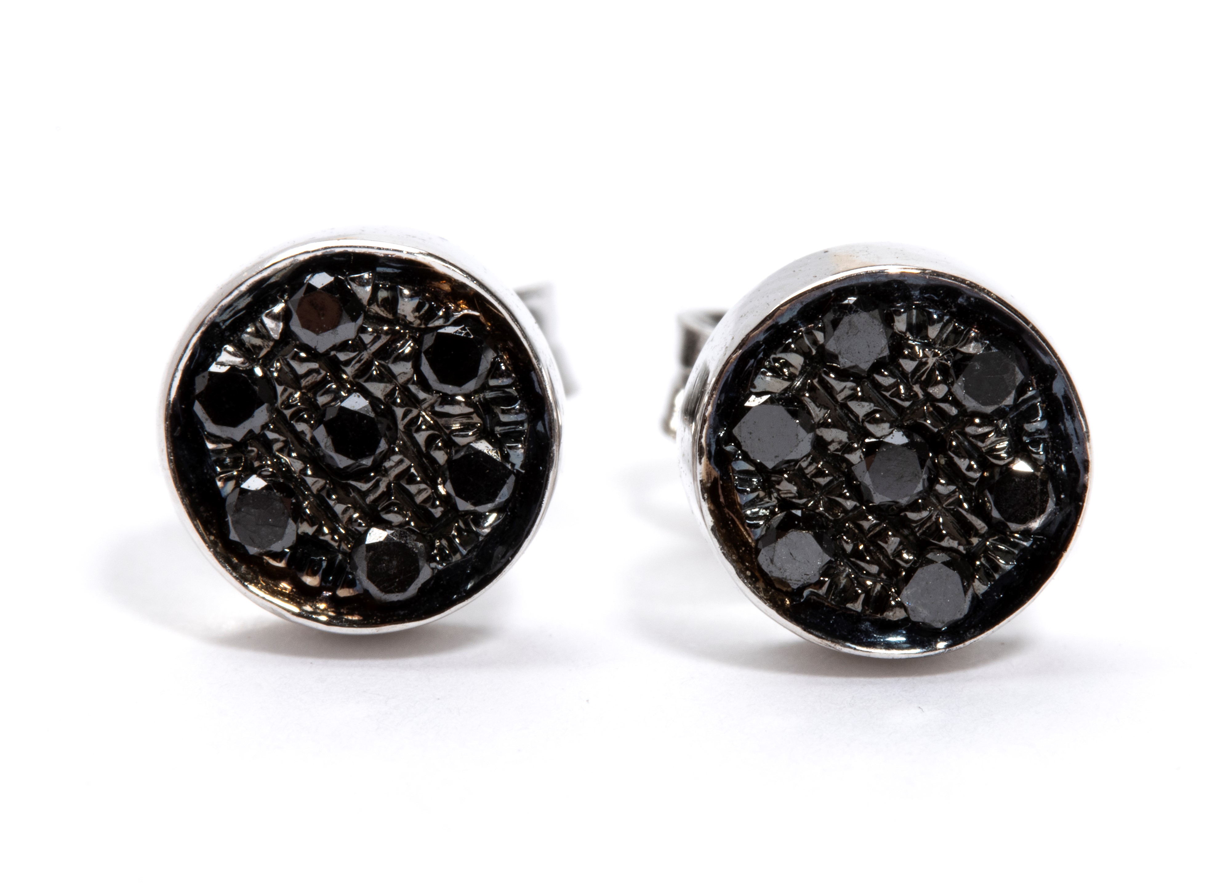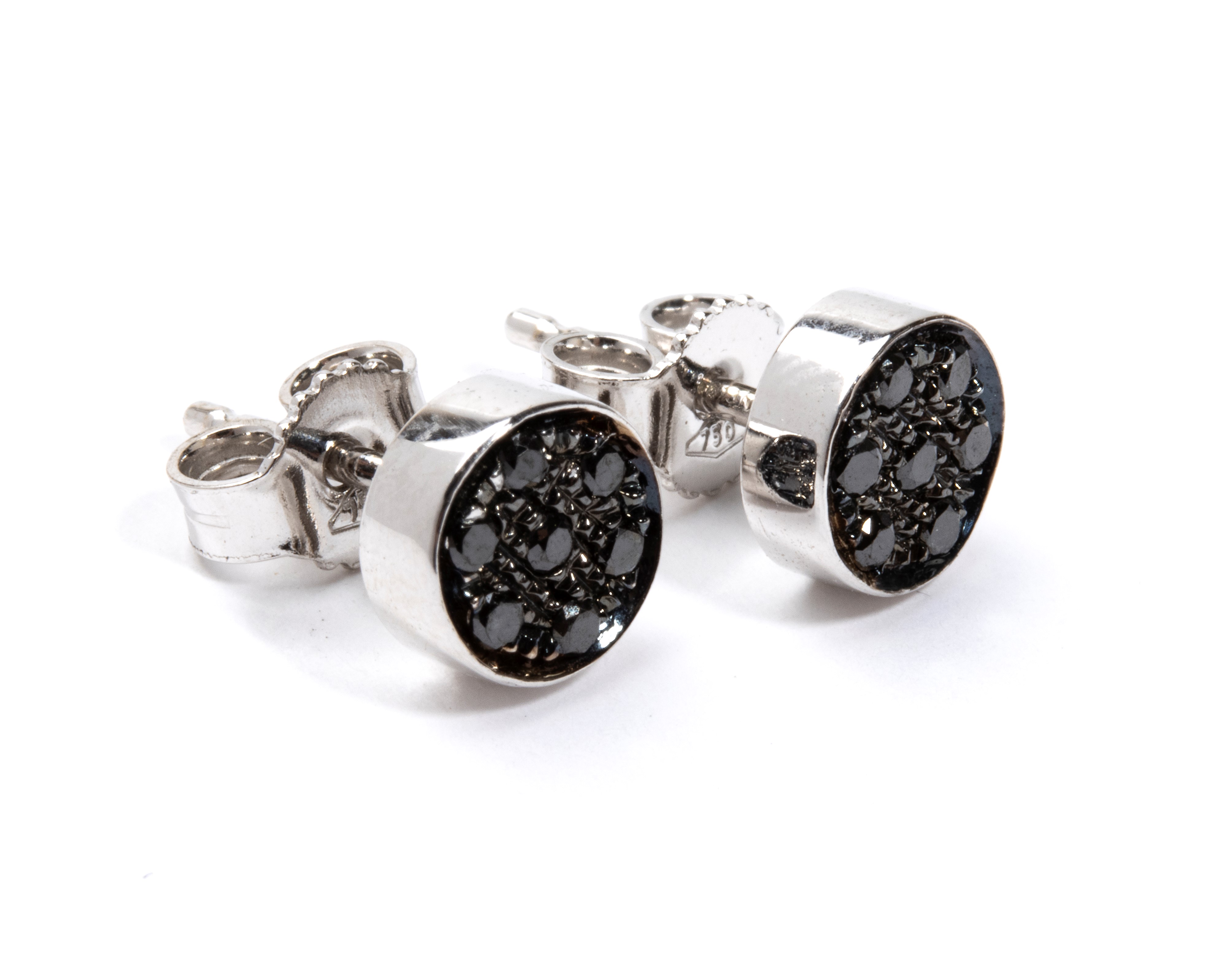 18k white gold, round shaped, with pave set round brilliant-cut black diamonds.