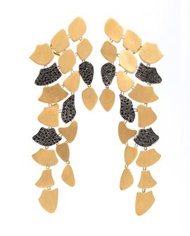 18k yellow gold, with a fringe of decorative elements set with black diamonds. Signed "MARTA PAOLILLO".