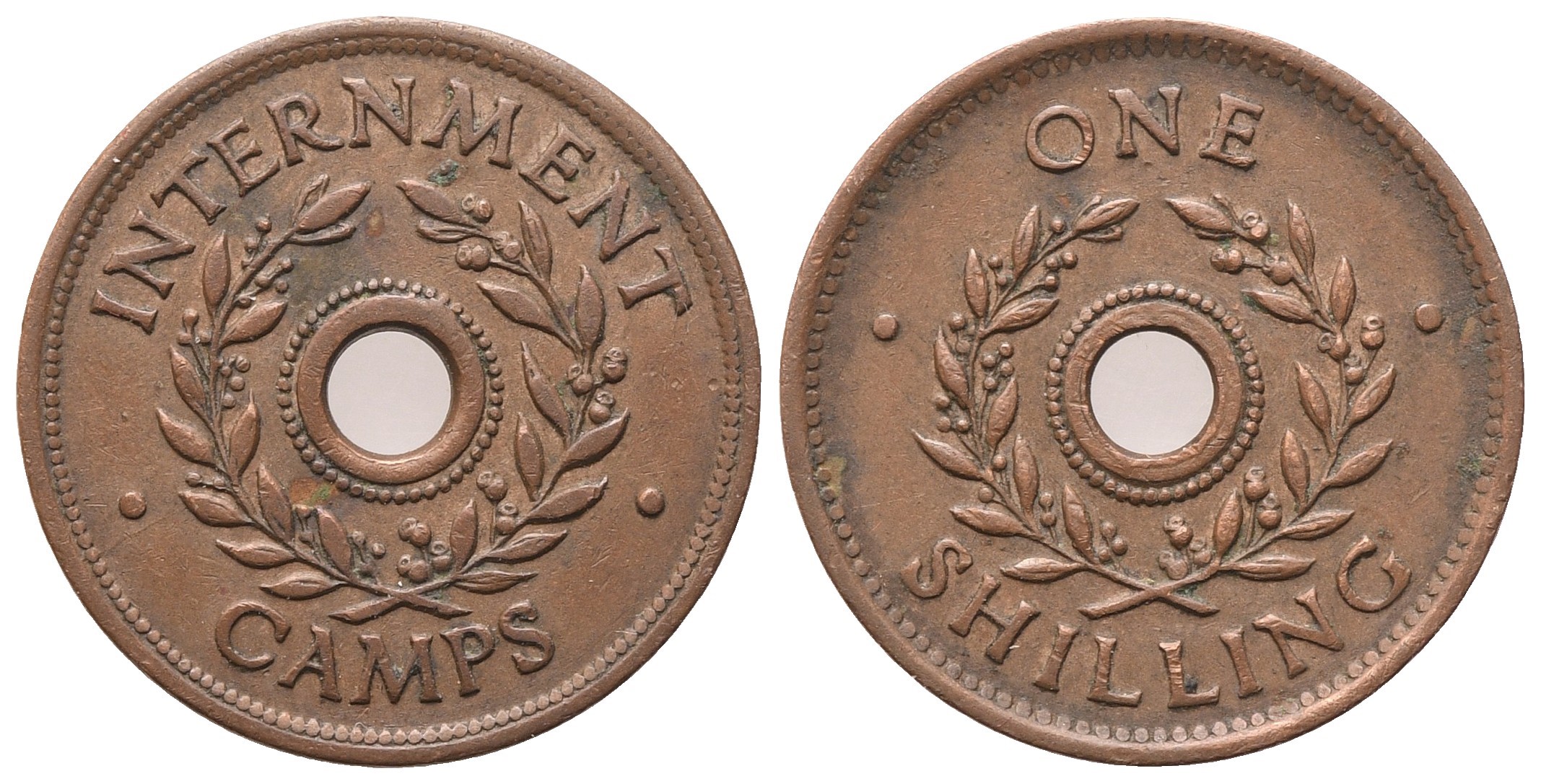 Type 1A. Cf. Greg McDonald, The Pocket Guide to Australian Coins and Banknotes Eighteenth Edition, Greg McDonald Publishing and Numismatics Pty Ltd, Lavington, 2010, p111; Renniks Australian Coin and Banknote Values 23rd Edition, Renniks Publications, Banksmeadow NSW, 2009, p. 221; S. Fabrizio, "Lo status di prigioniero di guerra e le “monete” dei campi di prigionia", in XIV Quaderno di Numismatica 2024, Edizioni C.N.R.L. qFDC. Patina marrone.