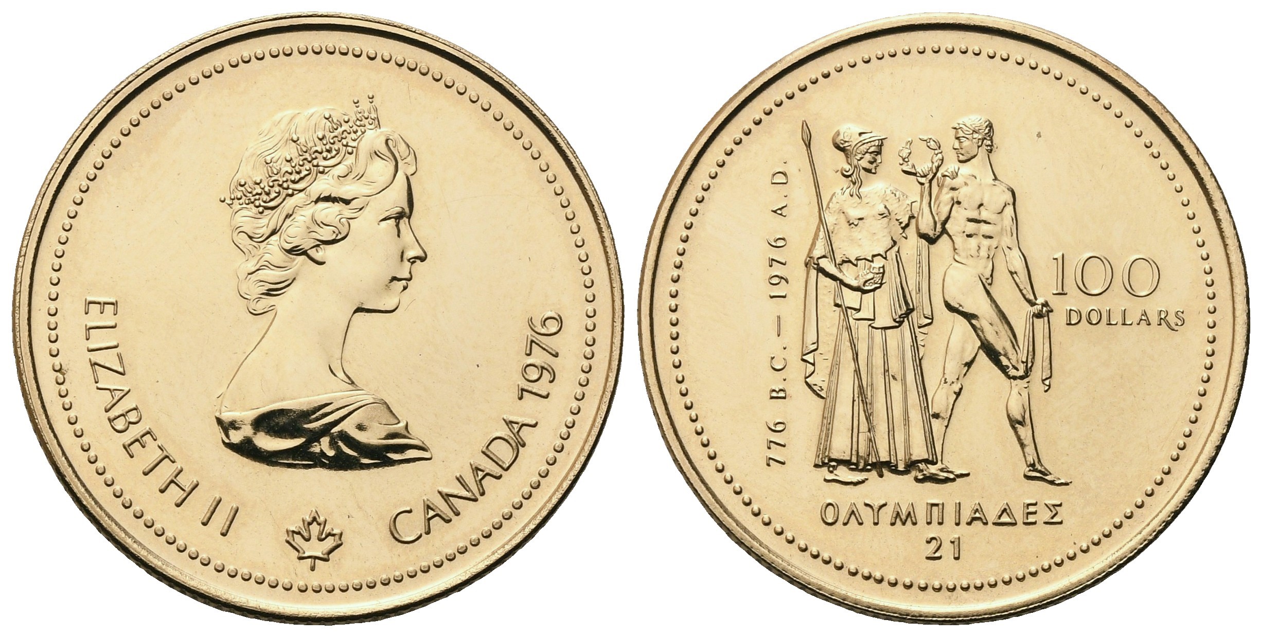 CANADA. Elizabeth II (1952-2022). 100 Dollars 1976; Au (13,37 g; 26,4 mm)