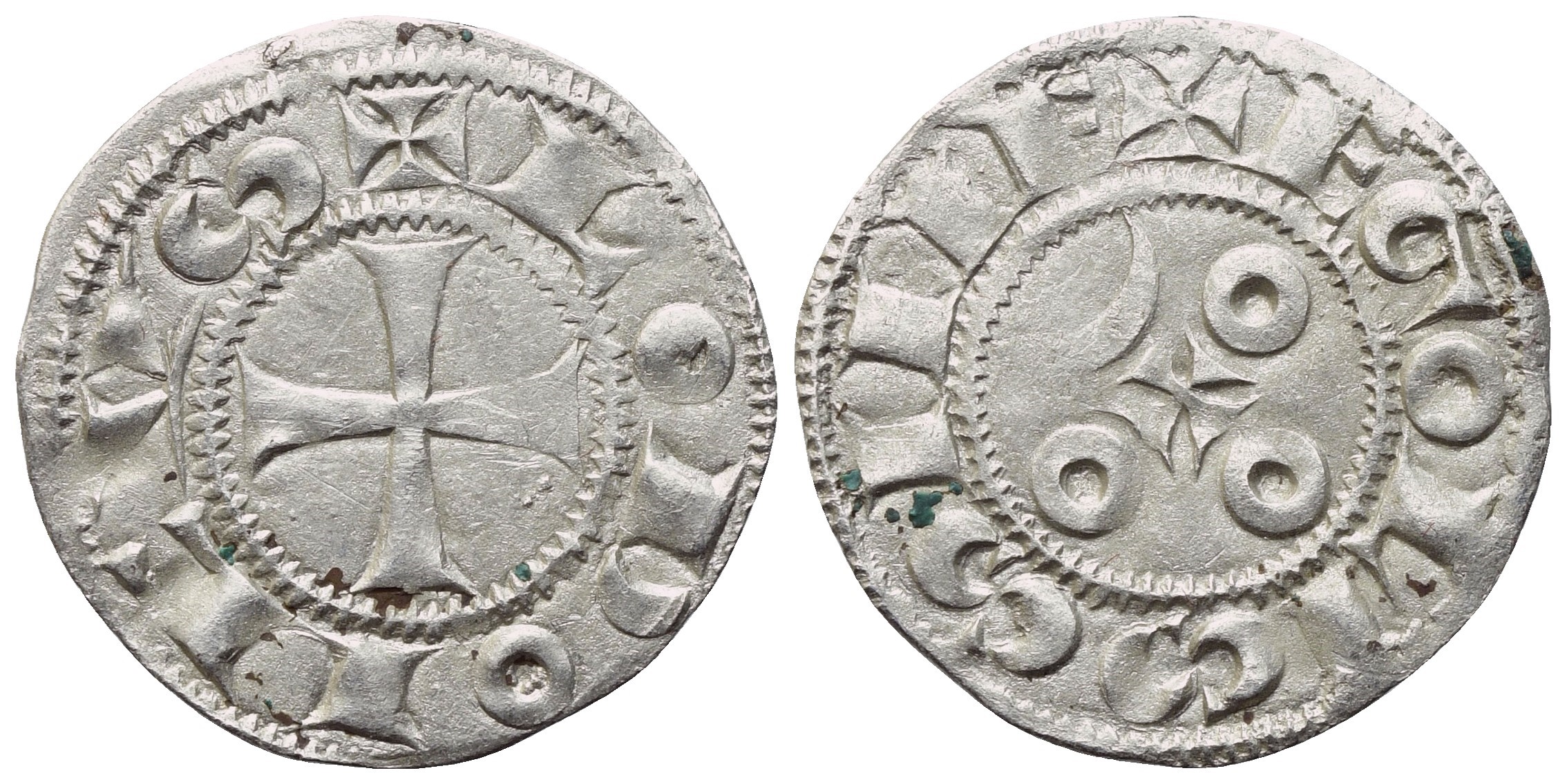 ✠ LODOICVS Croce patente. Rv. ✠ EGOLISSIME Tre anelli e crescente lunare attorno a croce. Boudeau -. Duplessy 947. BB+/qSPL